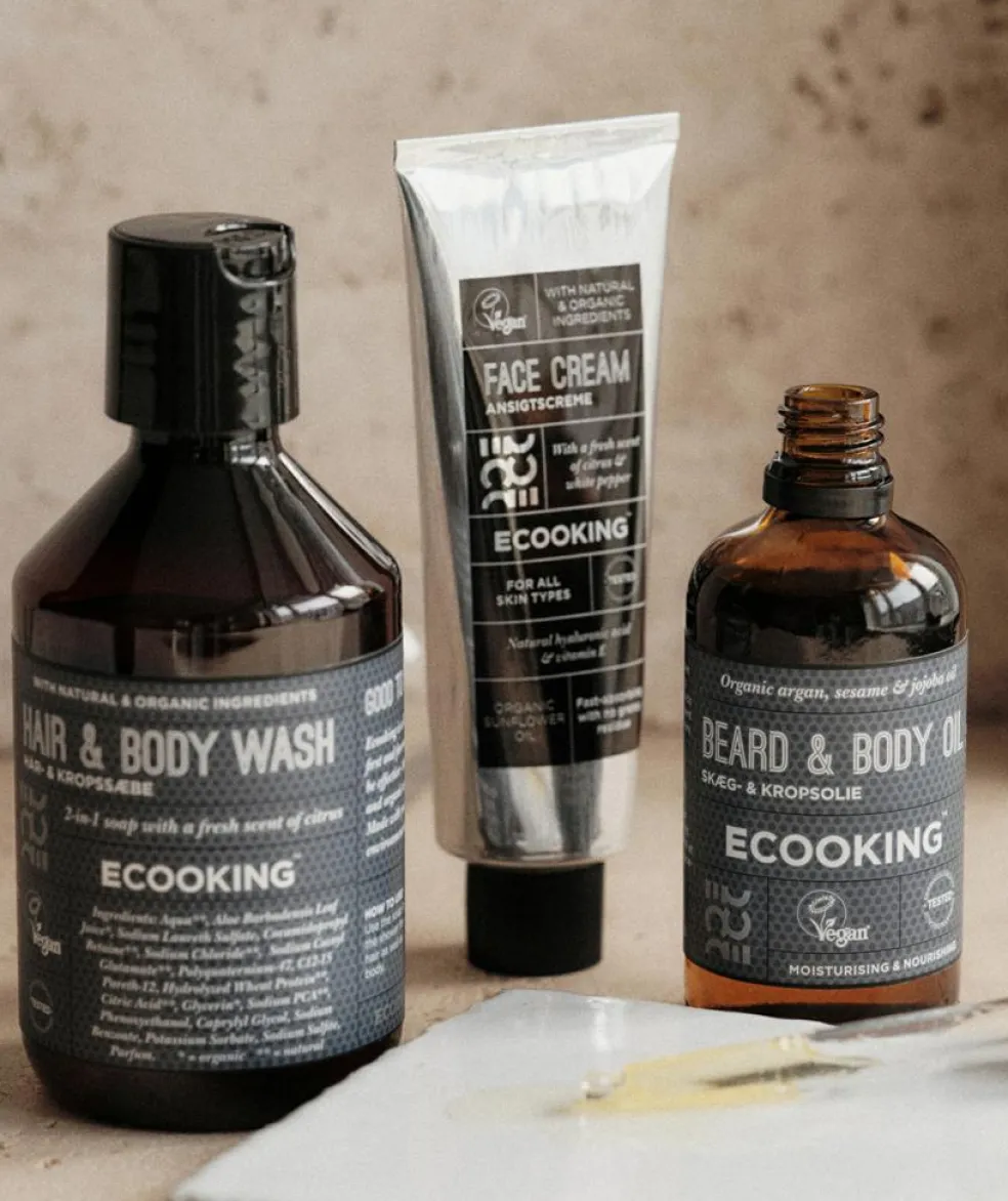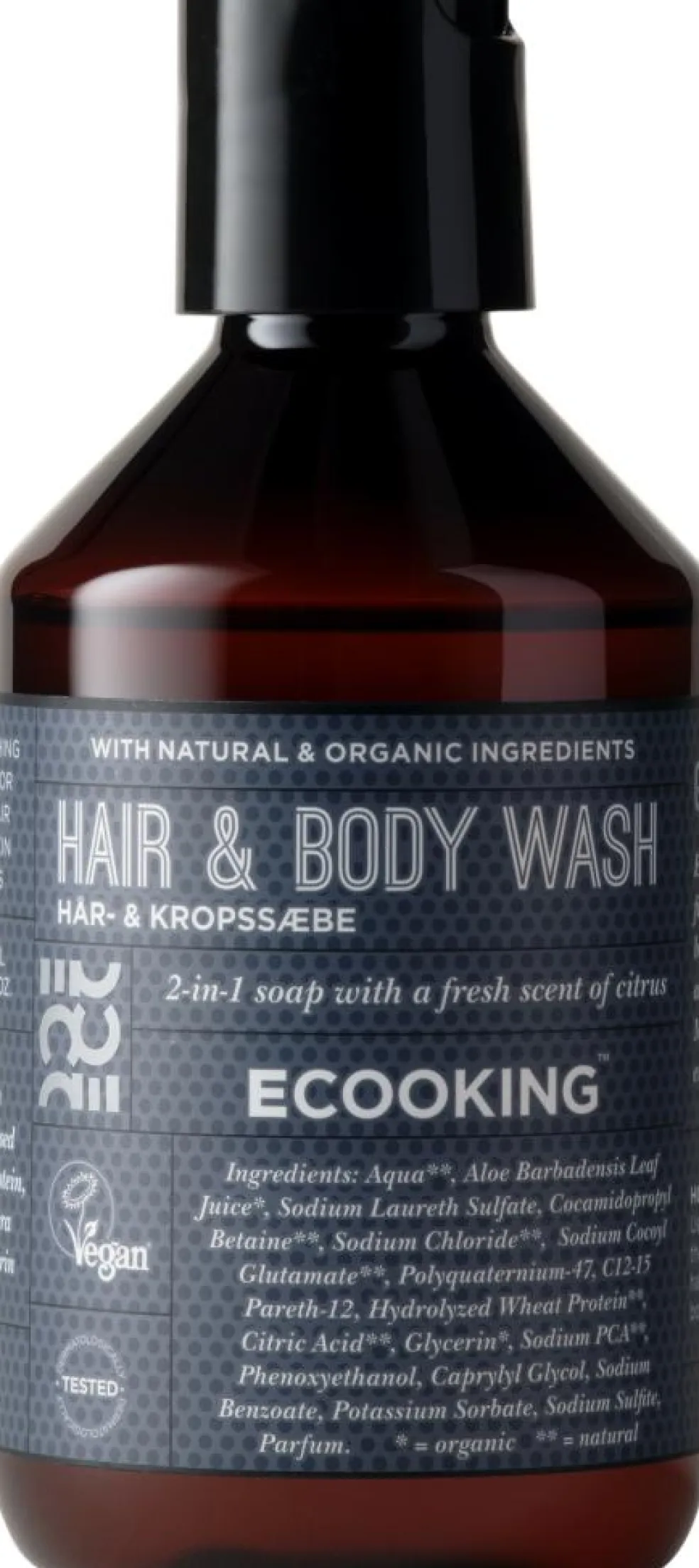 - Økologisk glycerin, der fugter og blødgør hår og hud.
