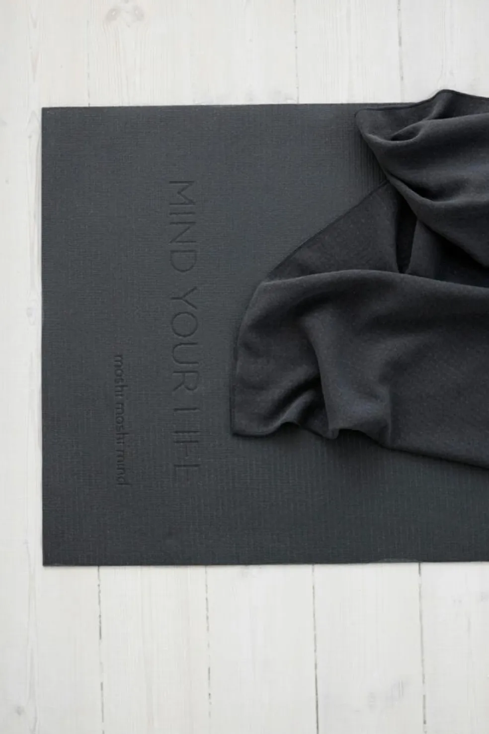 Yogamåtten er dekoreret med fin detalje, nemlig moshi moshi minds statement “MIND YOUR LIFE”.