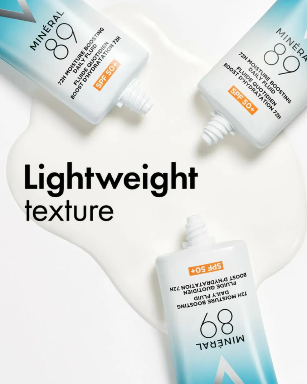 En unik koncentration af hudens essentielle elementer [Hyaluronsyre] + [Vichy vulkansk vand-mineraler] + [B3- & E-vitaminer] + [Squalane] i en let/lett tekstur, som booster og bevarer hudens fugt i op til 72 timer*.