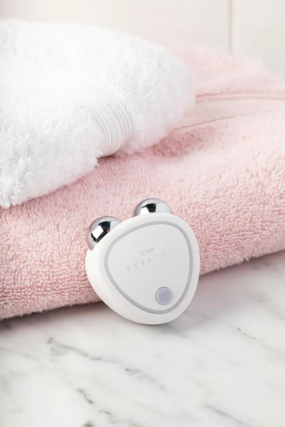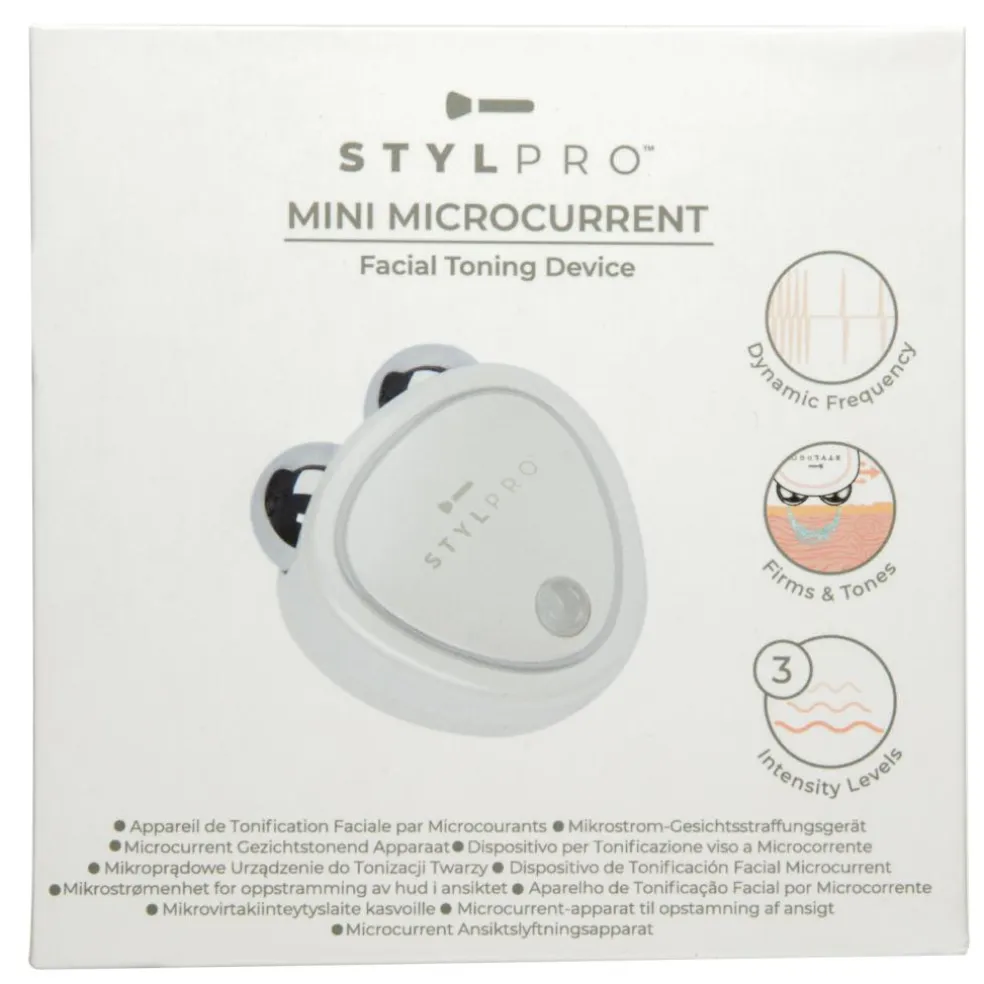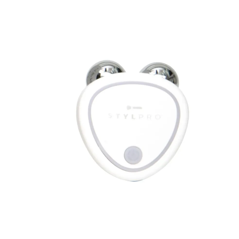 STYLPRO Mini Microcurrent-apparatet anvender mikrostrømme til blidt at stimulere ansigtsmusklerne, hvilket resulterer i et bemærkelsesværdigt løft og en tone, der forbedrer ansigtets generelle konturer.