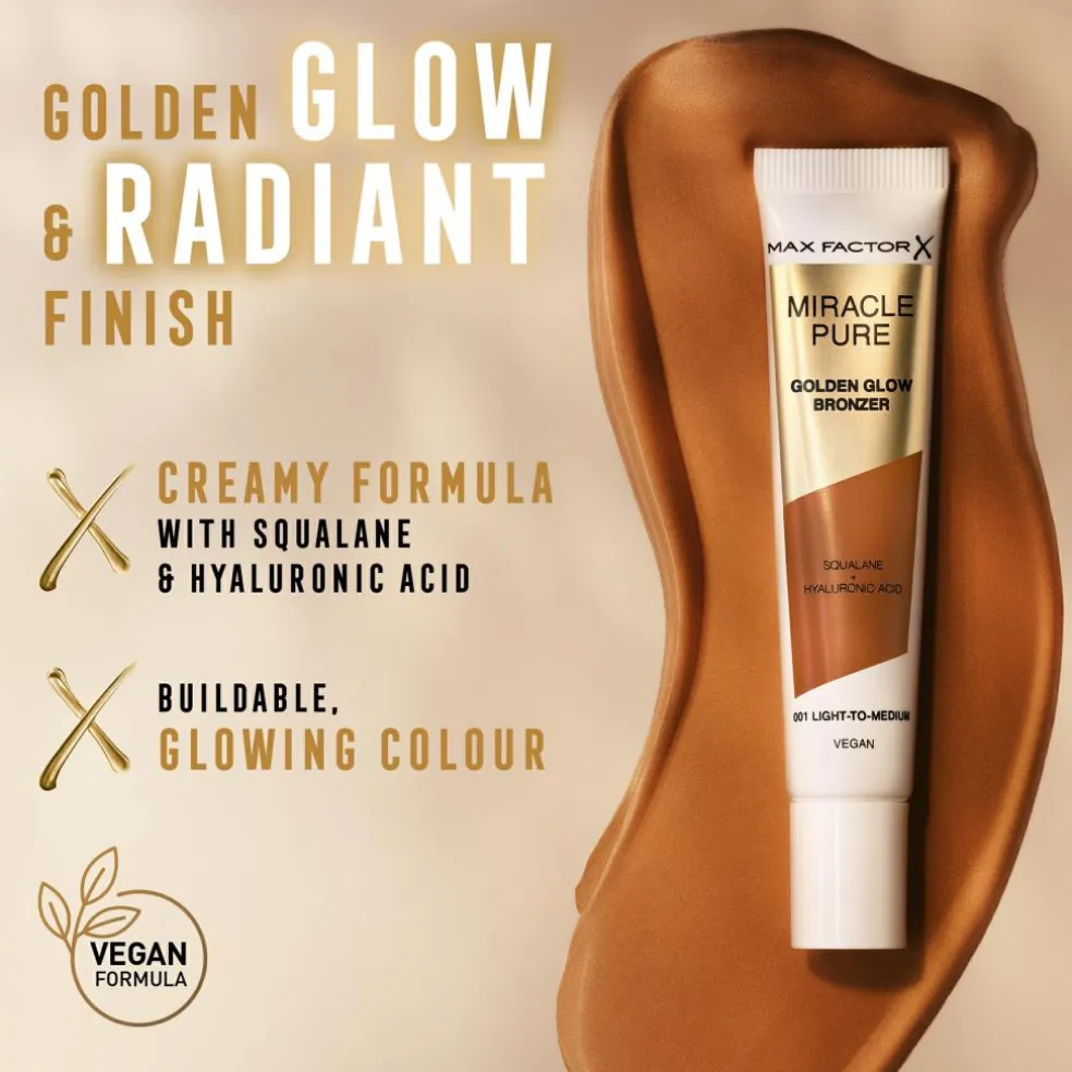 - Få sommerglød på tube med Max Factor Miracle Pure Golden Glow Liquid Bronzer.