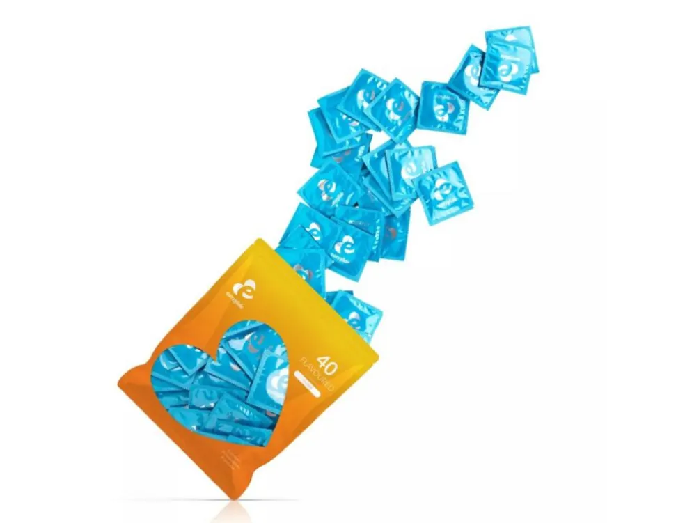 Æsken indeholder 40 kondomer, der har forskellige smagsvarianter: jordbær, blåbær, mint og chokolade. Det gør legen lidt sjovere, når der er lidt forskellige smagsvarianter at vælge imellem, og man slipper ligeledes for den traditionelle smag af latex ved oralsex.