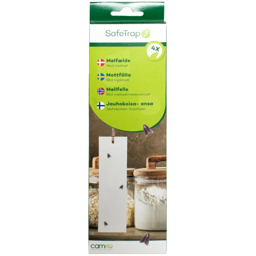 Ved anvendelse af SafeTrap Melmøl fælder tiltrækkes og fanges melmøl, dermed stoppes reproduktionen, og fødevarer beskyttes mod deres larver.