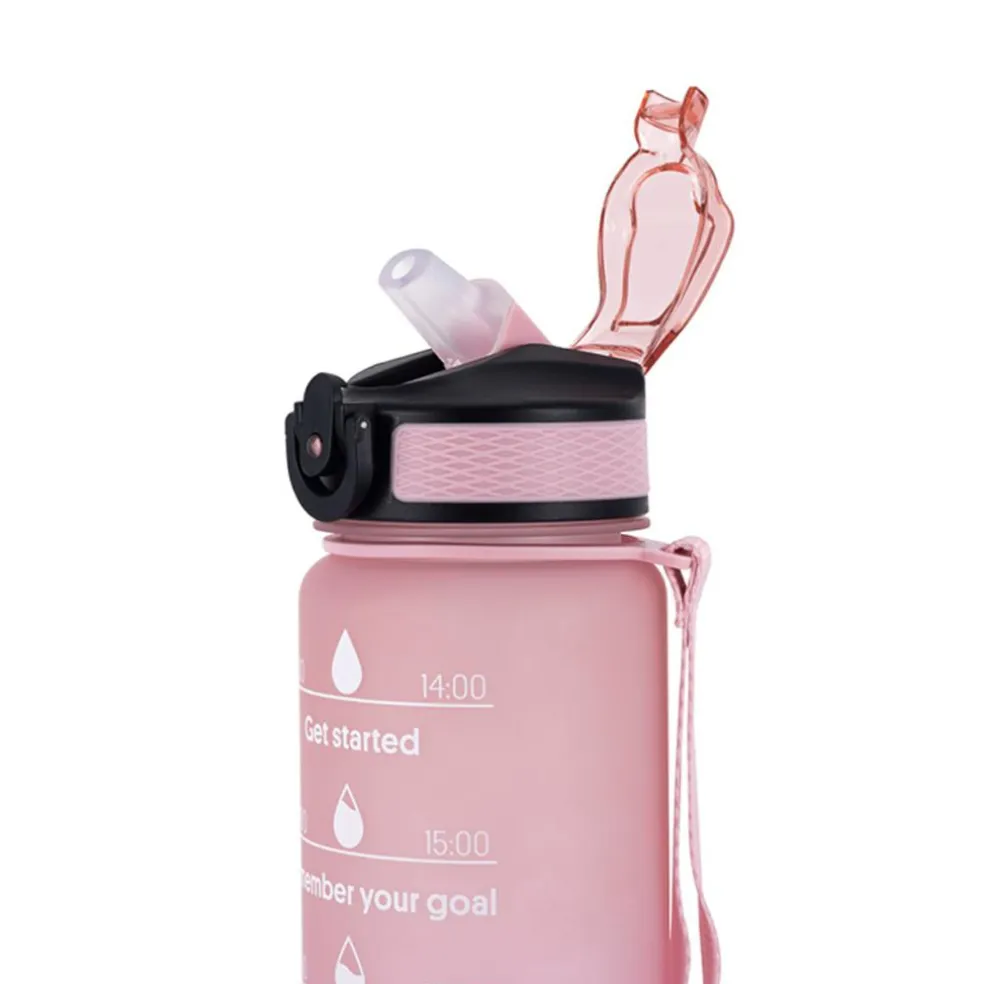 Motivationsflasken er udstyret med sugerør og en flip-lock mekanisme, der effektivt forhindrer lækager, og den leveres med en praktisk bærestrop.