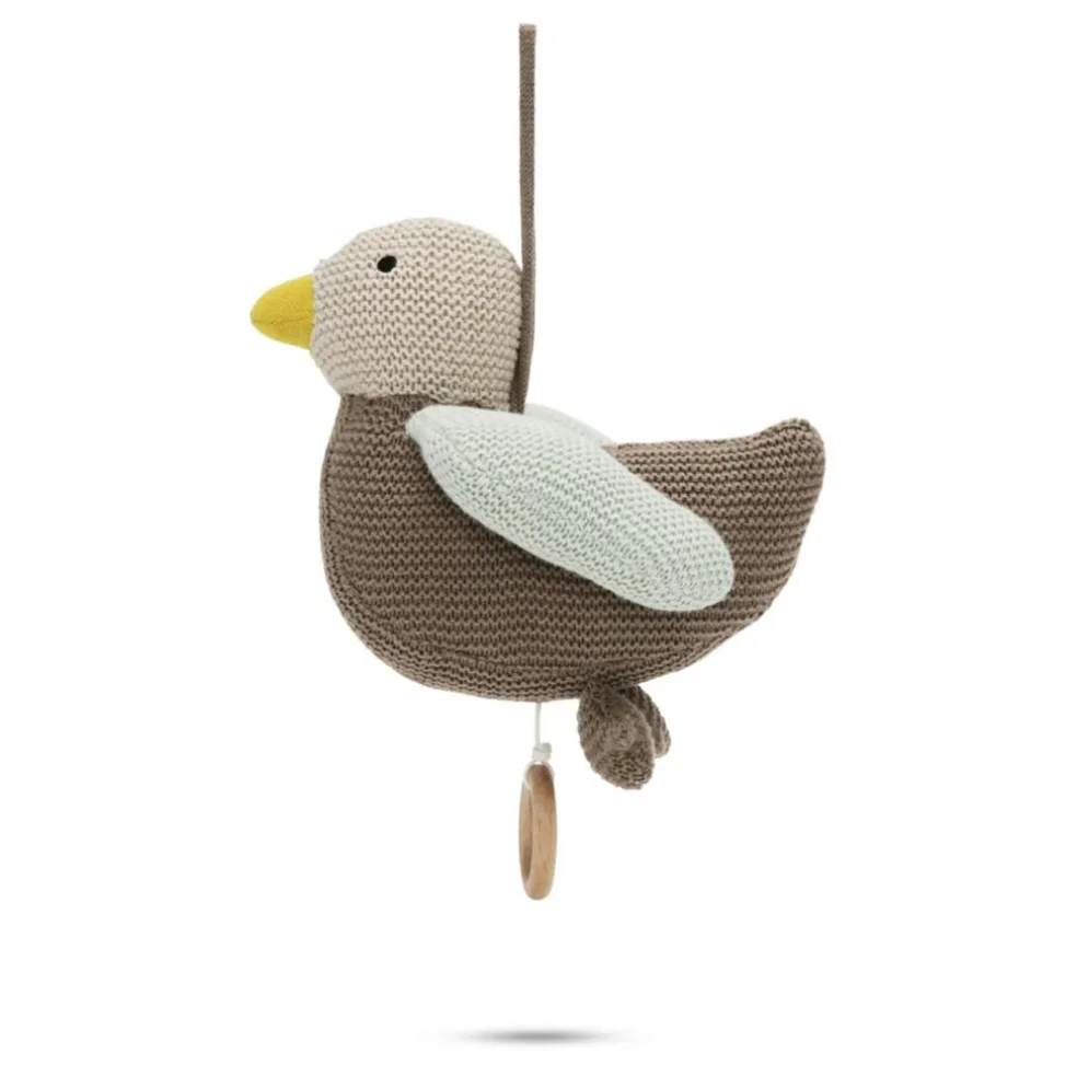 Træk i træringen og uroen vil spille den fineste, klare og rolige vuggevise “Sleep baby sleep”, som kan få enhver baby til at slappe af.