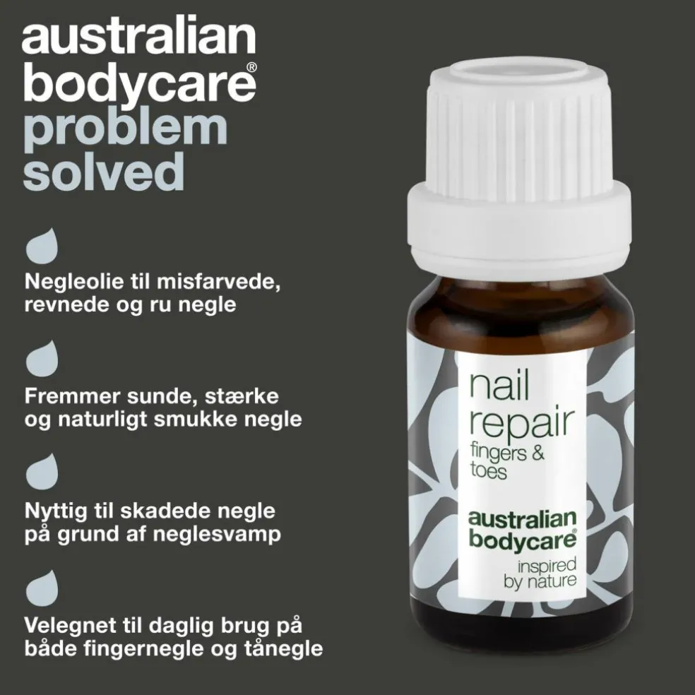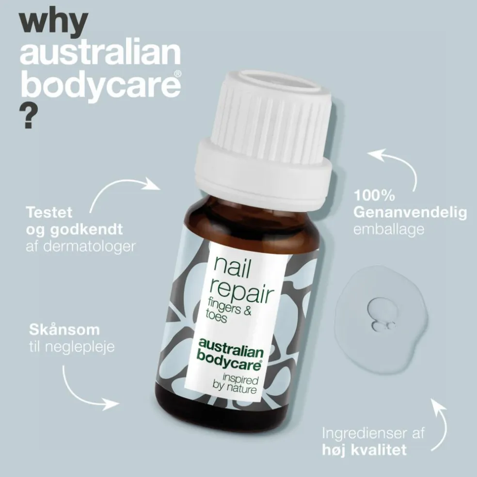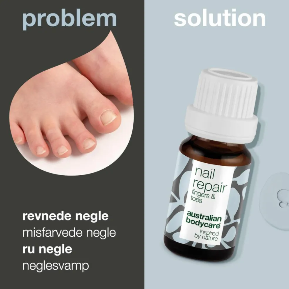 Nail Repair indeholder bakteriemodvirkende Tea Tree Oil og E-vitamin, som plejer og nærer misfarvede og rillede negle.