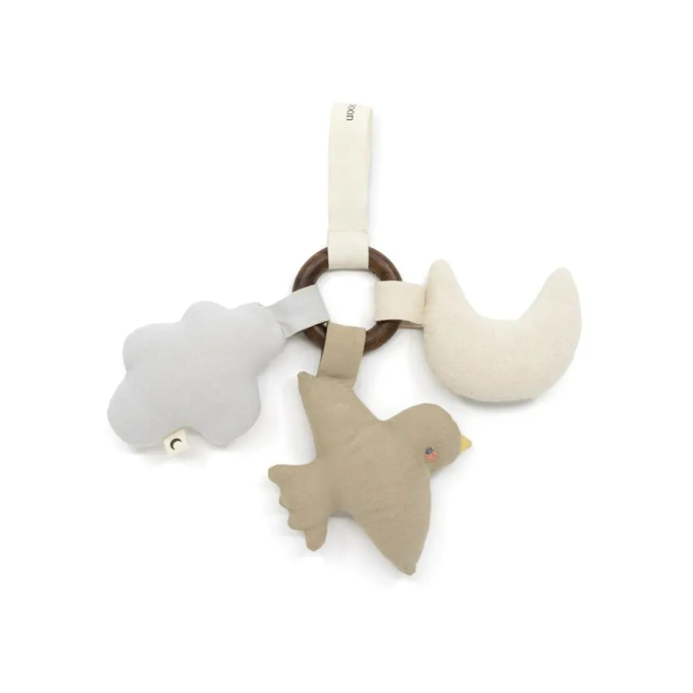 Natbamserne er formet som de beroligende figurer fra Ole Lukøje-universet, som skyen, månen og fuglen. Natbamserne er lavet i fine, neutrale farver og fremstillet af 100% økologisk bomuld.