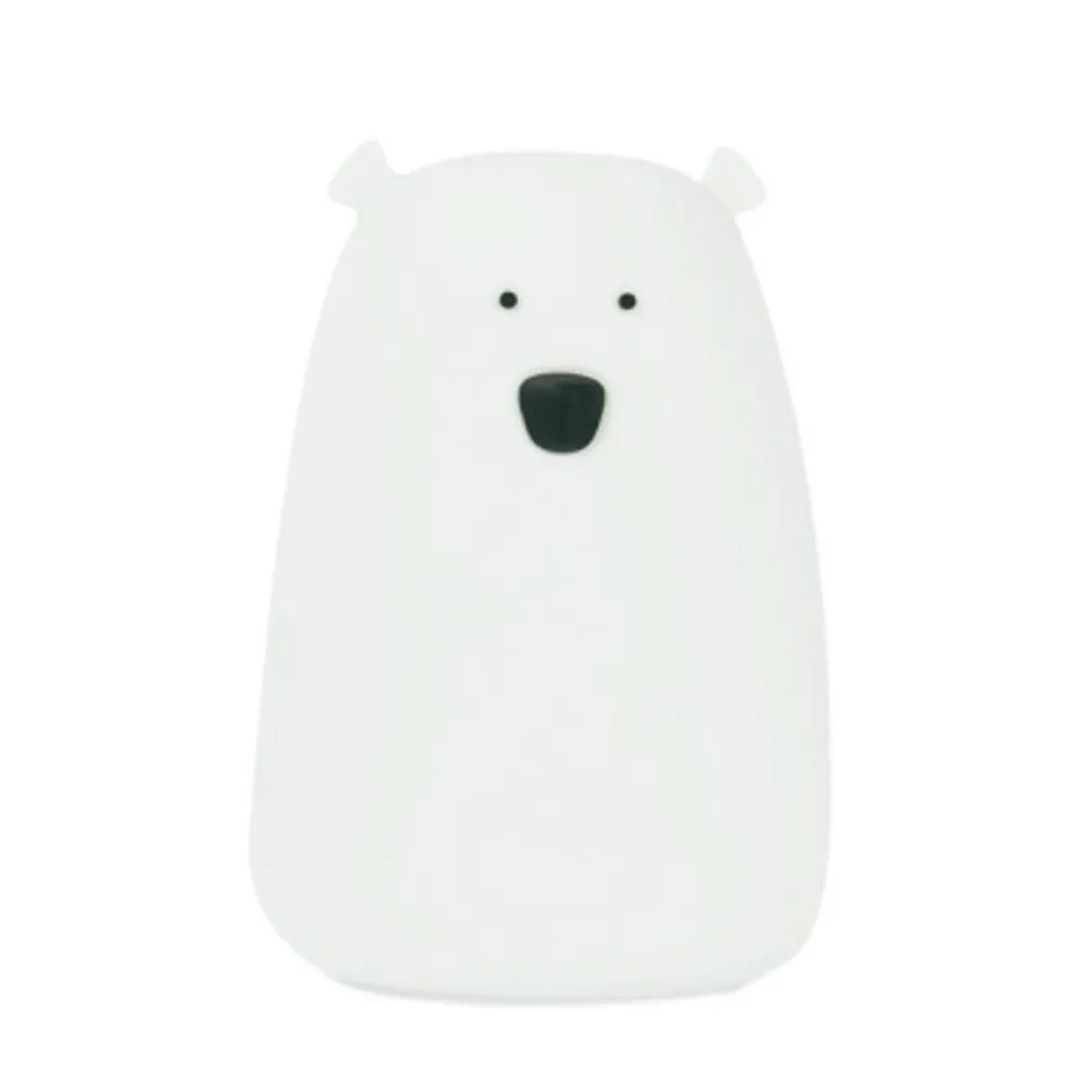 Rigtig sød natlampe til børneværelset fra Rabbit & Friends. Formet som en stor hvid bjørn har den et super sødt design. Fremstillet silikone til de små børn og baby.