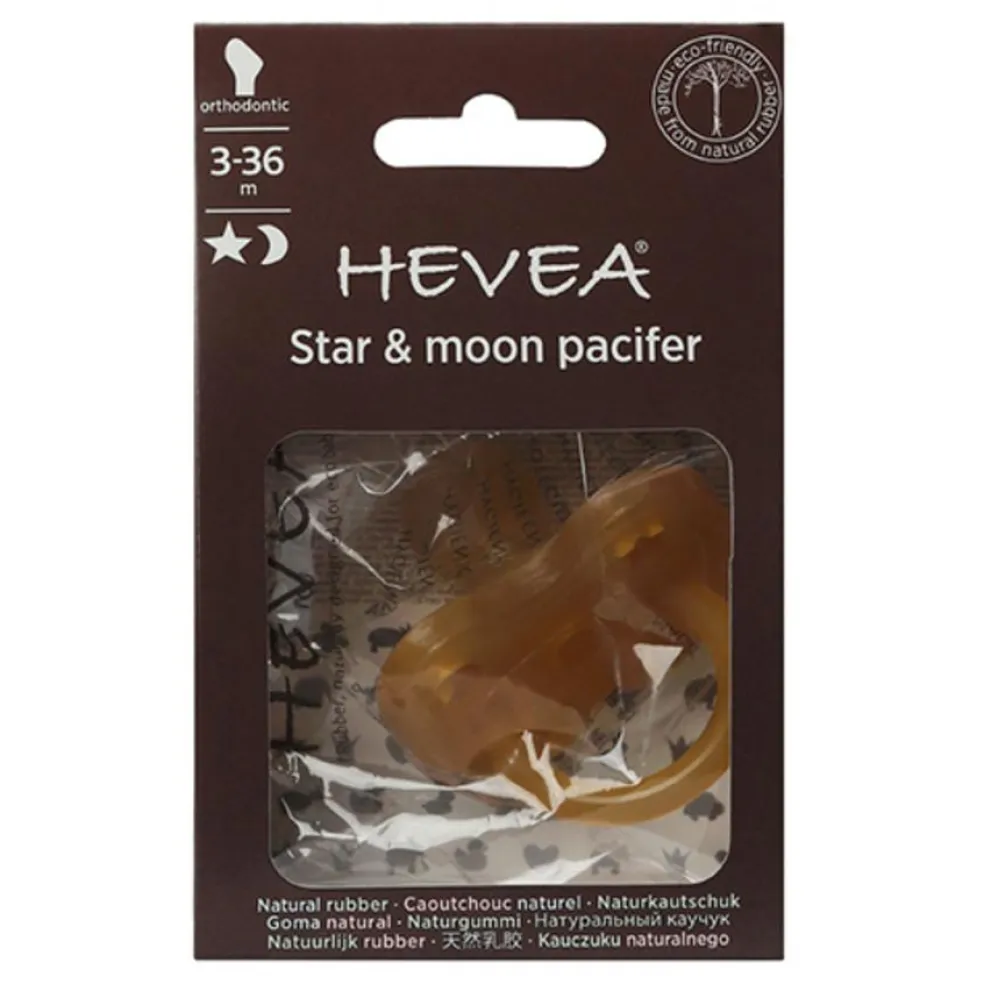 Hevea naturgummisut har en ergonomisk udformet sutteform, der er skånsom mod barnets ansigt.