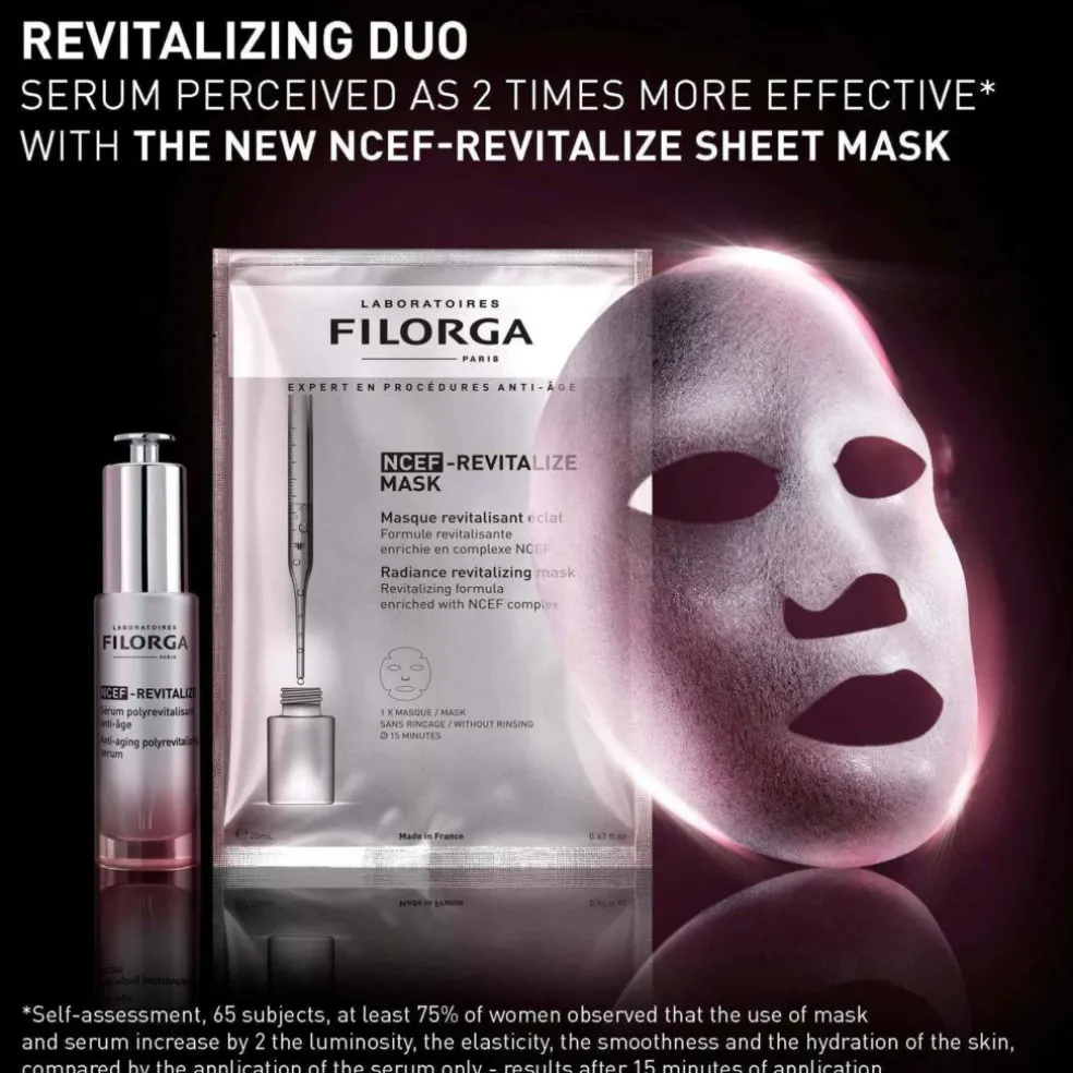 Anvend masken sammen med NCEF-Revitalize Serum for at opnå øget effektivitet og optimale resultater.