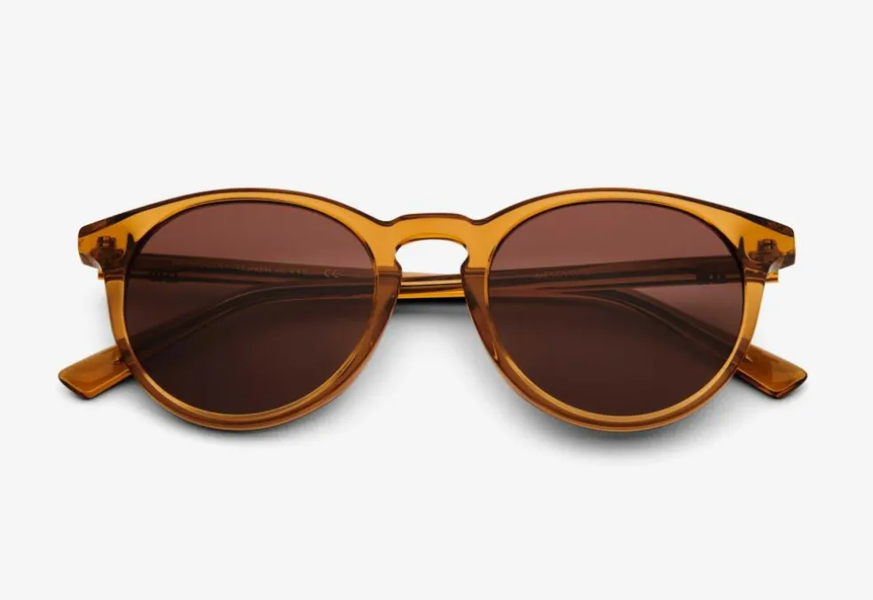 Solbrillerne er lavet af håndlavet acetat og er designet i Danmark af en lille dansk virksomhed. Solbrillerne har nickel-fri hænglser, fuld UV400A+B beskyttelse og kommer i en hvid æske med en mikrofiberpose som også kan bruges som pudseklud.