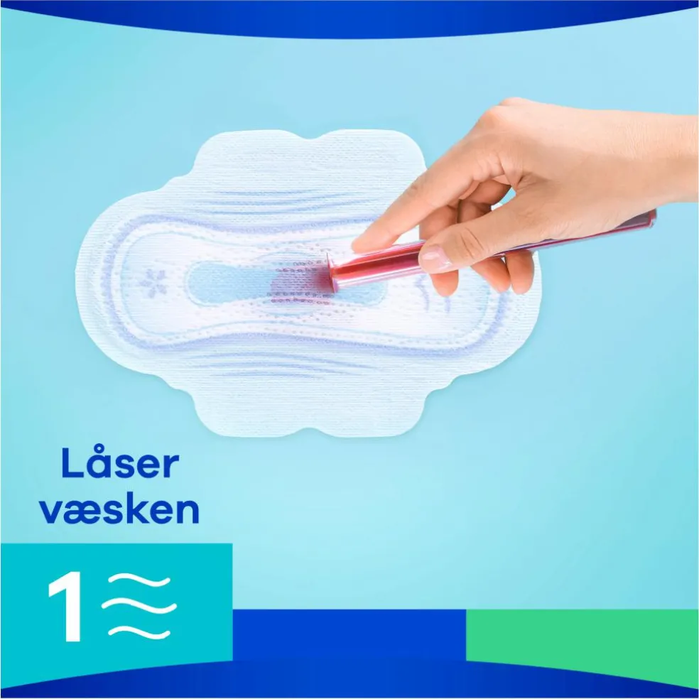 - Superabsorberende kerne med en gel, der binder væske, og som ikke kan lække