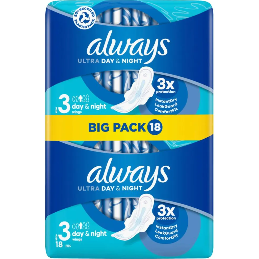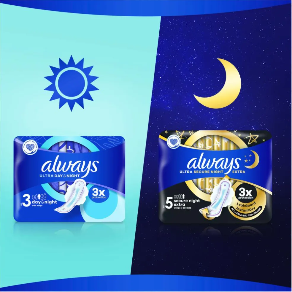 Always Ultra Night bind med Flex- og Fitsystem, som får bindet til at blive siddende, og en gel, der binder væske (og ikke kan lække), som trækker væsken ind og hjælper med at forhindre lækage. Selv om Always Ultra bind kun er 3 mm tykke, giver de en skøn fornemmelse af velbefindende og beskyttelse, når du har menstruation. Skriv reglerne om med Always MyFit, og vær tryg, uanset hvordan du bevæger dig. Prøv Always Ultra Secure Night (str. 4), Always Ultras bedste bind til beskyttelse om natten.