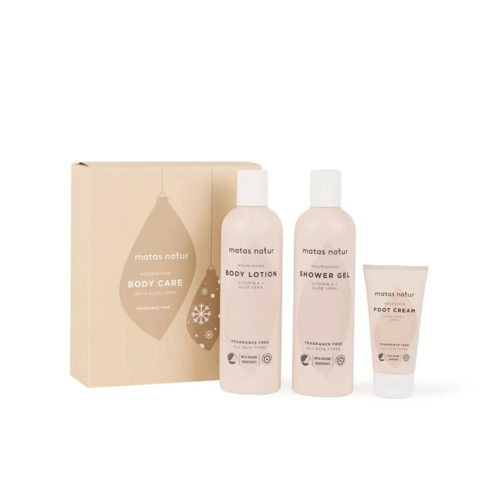 Matas Natur Nourishing Body LotionBodylotion med økologisk aloe vera, som fugter, beskytter og plejer huden. Antioxidativt E-vitamin virker beskyttende, mens glycerin virker fugtbevarende og modvirker udtørring af huden.