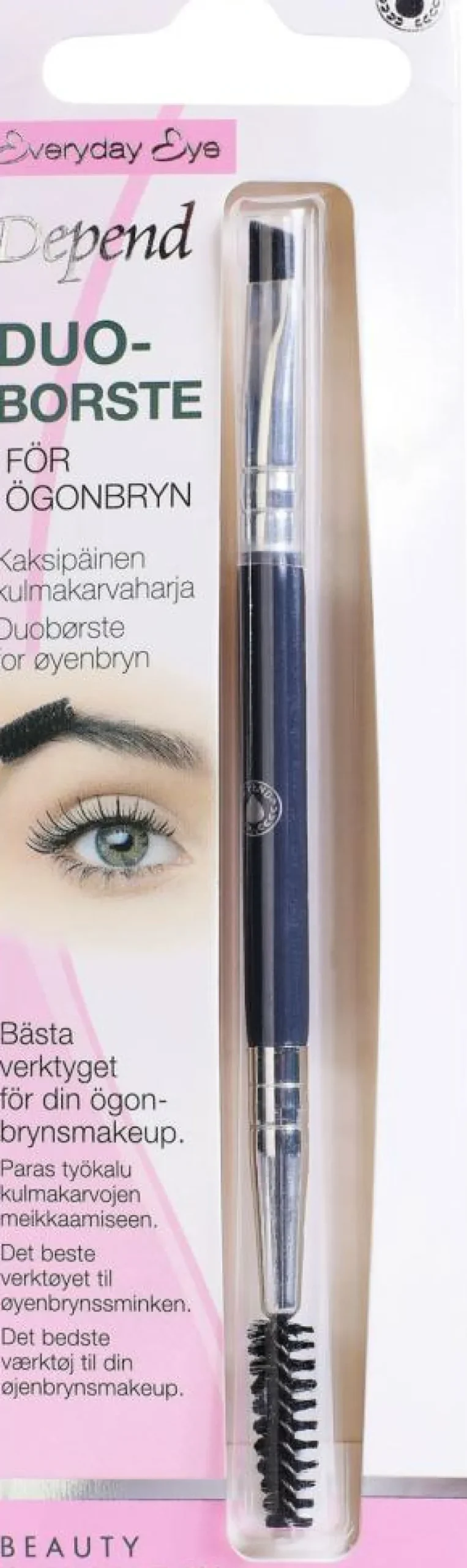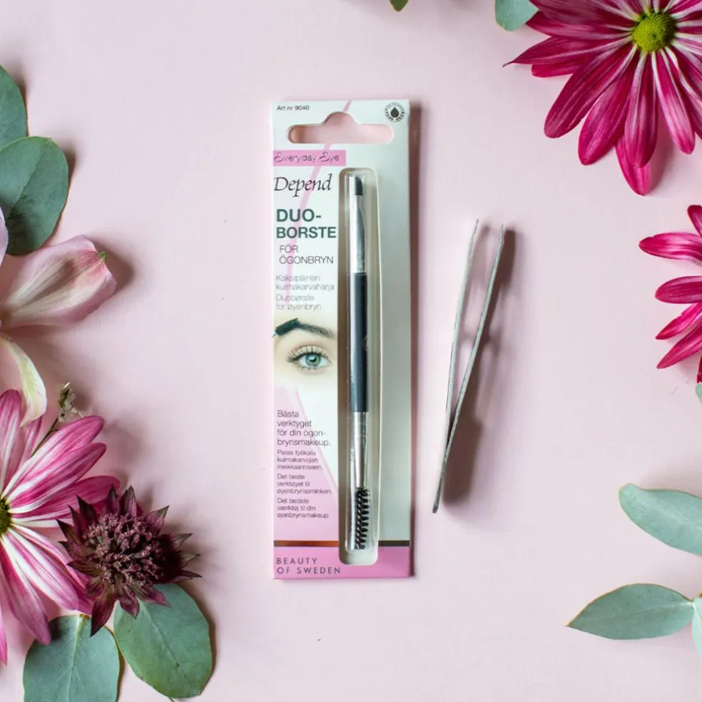 Det bedste værktøj til din øjenbrynsmakeup. Skrå pensel til at påføre f.eks. øjenbrynsskygger og cylinderformet børste til at børste og fordele farven.