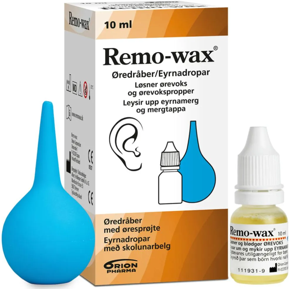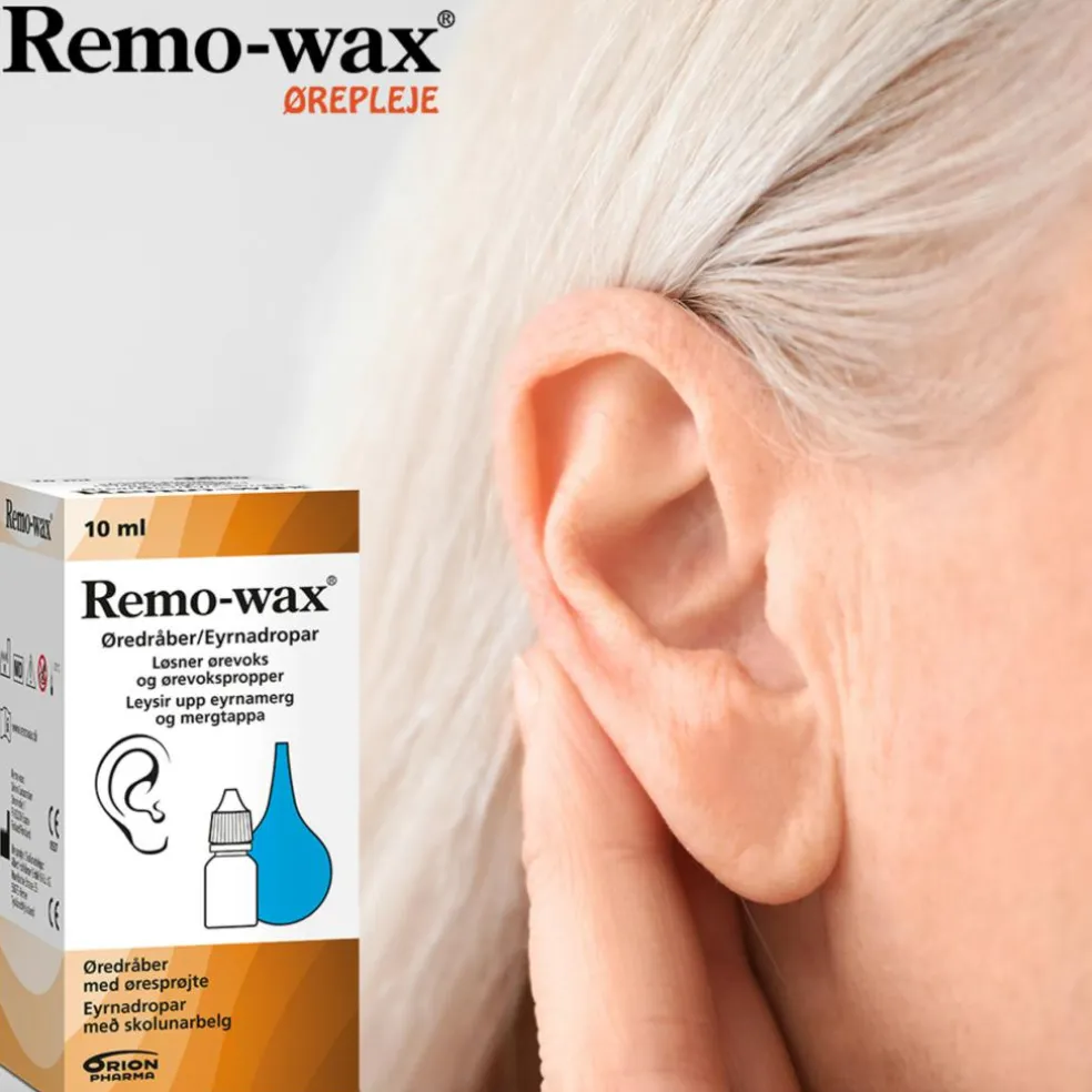 Remo-wax øredråber løsner og blødgør fastsiddende ørevoks og ørevokspropper og forebygger dannelse af ørevokspropper.