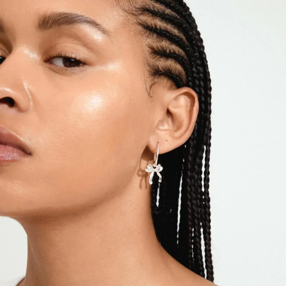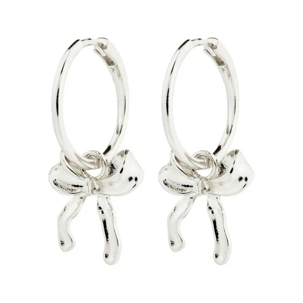 Let a bow lead your fashion tale, med de trendy sløjfe-hoops – et key item, du ikke kommer uden om i denne sæson. Style de sølvbelagte sløjfer som en all-time favourite til dine everyday outfits og flowy summer dresses, og du er sikret sommerens on-point look. Øreringene har en easy-to-use kliklås for en let og effortless styling og er fremstillet af 99% genanvendte materialer. Et styling-valg du kan være stolt af.