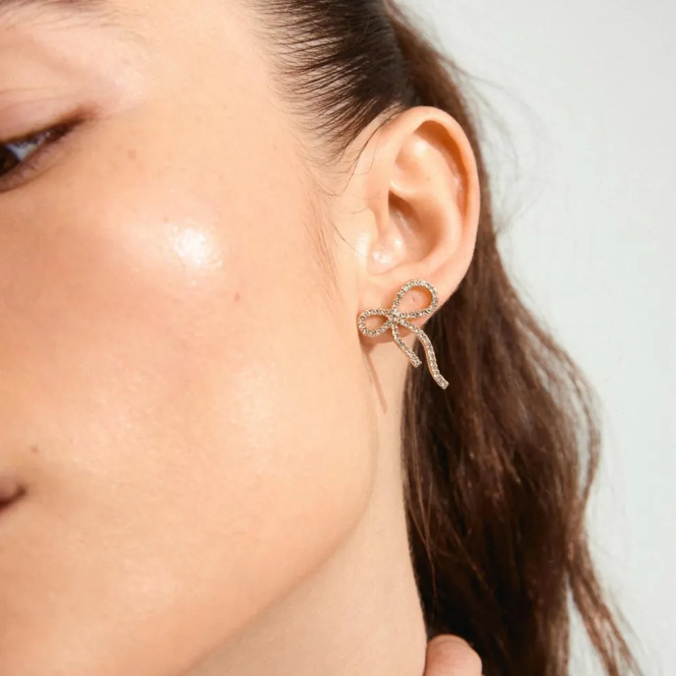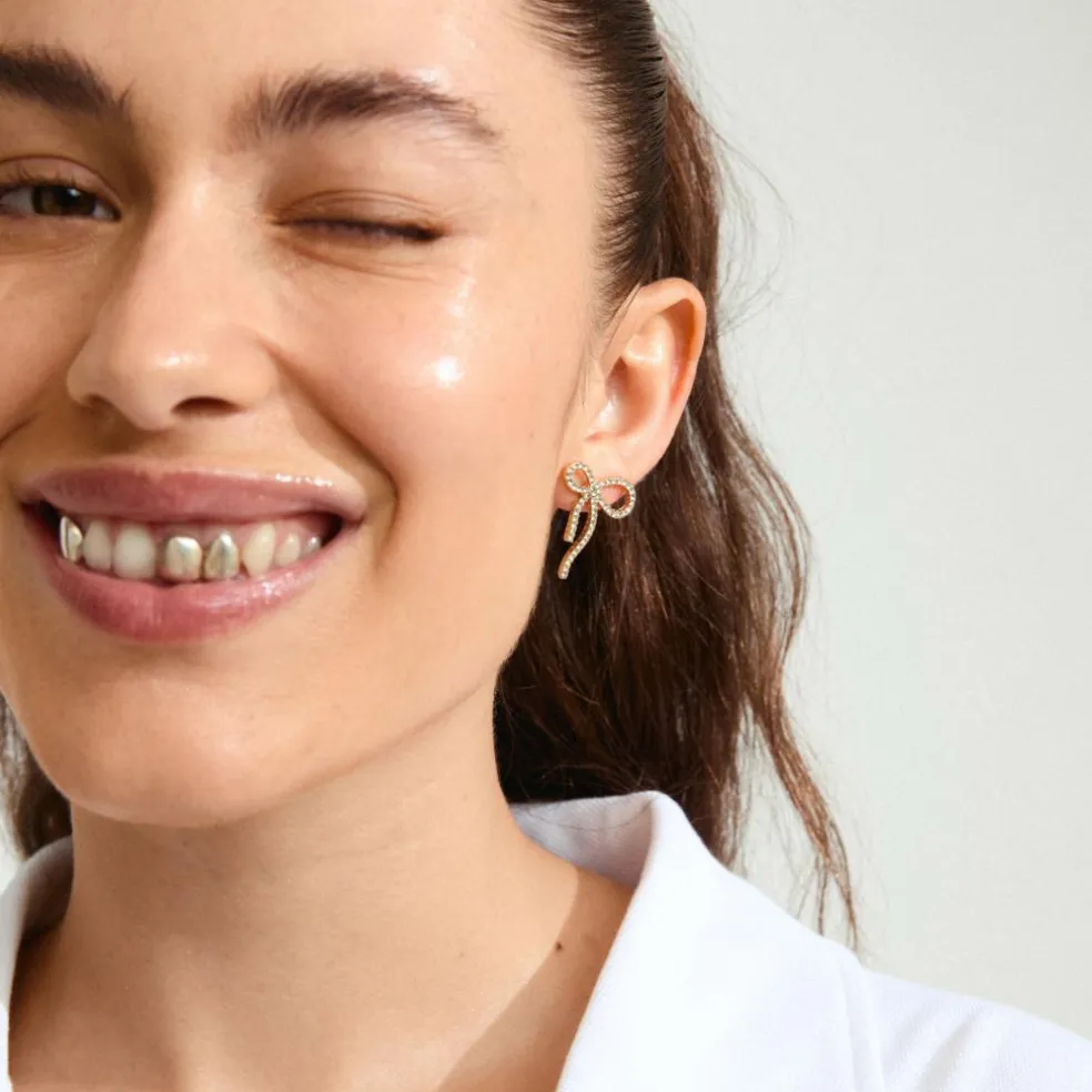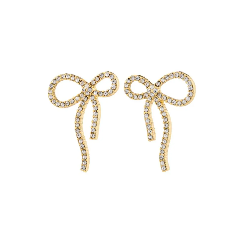 Tie your outfit together with a bow! Super trendy sløjfe øreringe – et key item, du ikke kommer uden om i denne sæson. Style de guldbelagte sløjfe-øreringe som en all-time favourite til dine everyday outfits og flowy summer dresses, og du er sikret sommerens on-point look. Dekoreret med funklende Preciosa krystaller er sløjferne også dit oplagte go-to for et festligt glam-look. Så grib om champagneglasset and bring some sparkle to the party. Og guess what – de er fremstillet af 91% genanvendte materialer, – et styling-valg du kan være stolt af.