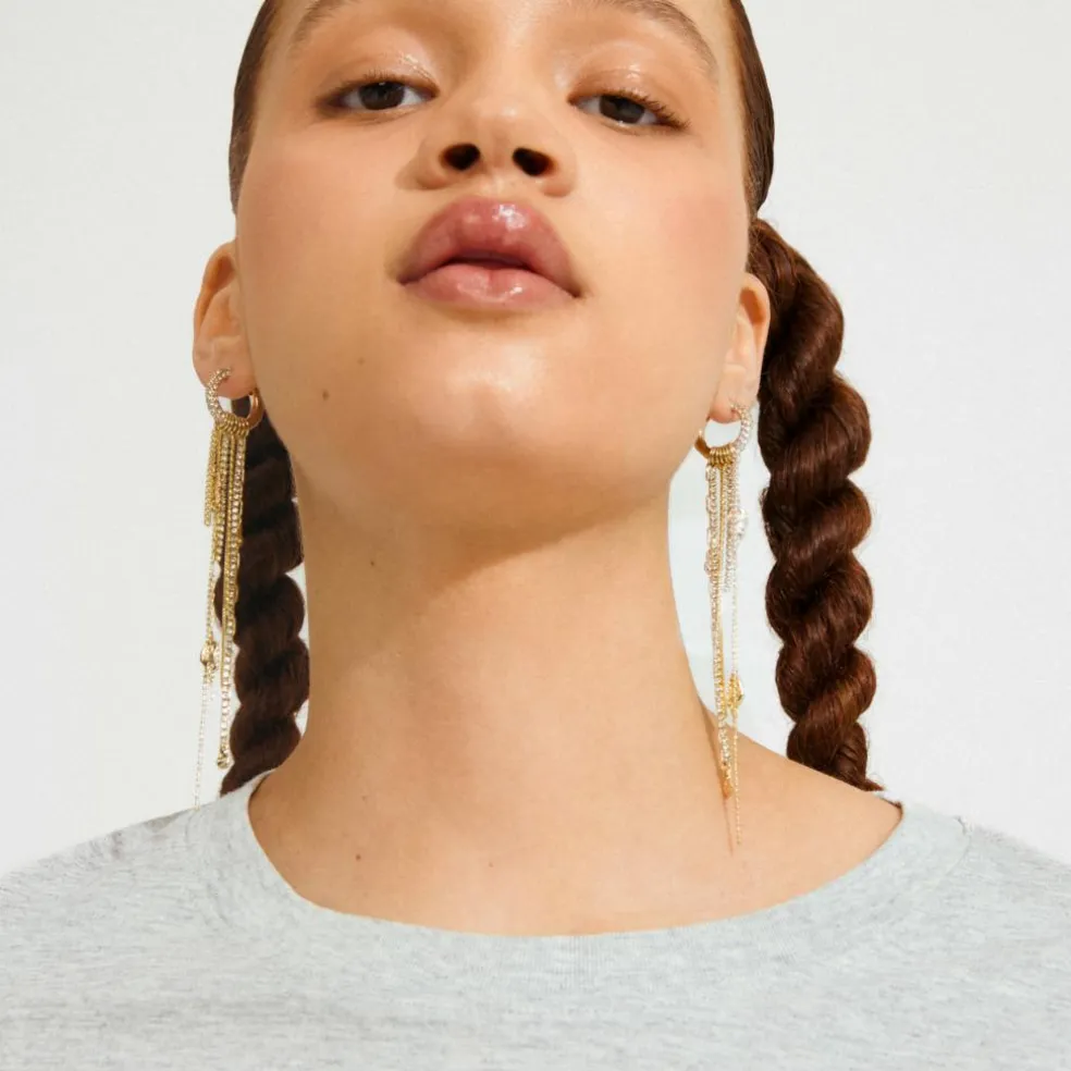 De guldbelagte DRUE-øreringe fra Pilgrim er det ultimative go-to, når du vil tilføre dit look et hint af effortless luxury. De små hoops med Preciosa-krystaller smelter sammen med en kaskade af kæder og fine vedhæng, der skaber et legende, free-minded udtryk med en breezy feel.
