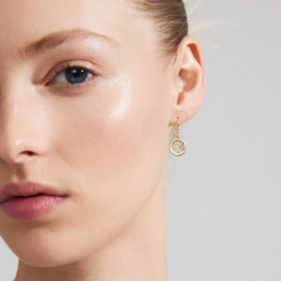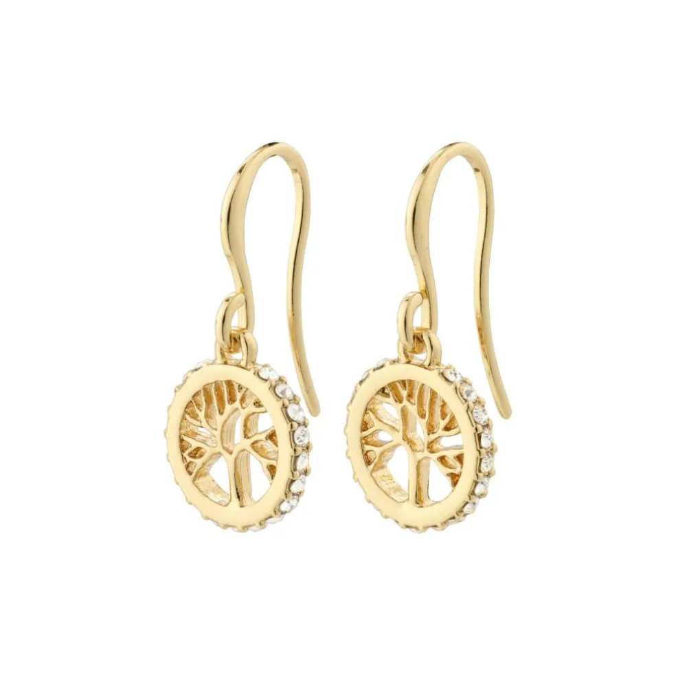 A tree is only as strong as its roots! Guldbelagte ALIA øreringe fra Pilgrim med små cirkelformede vedhæng dekoreret med Preciosa-krystaller og fine udskæringer af Livets Træ. Klassisk og tidløst design, der repræsenterer det eviggyldige symbol på et langt liv, visdom og styrke. Med ALIA øreringene får du et sæt all-time favourites, der også signalerer din tilknytning til familien og forbindelsen til dine rødder. Lavet med kærlighed og 95% genanvendt materiale.