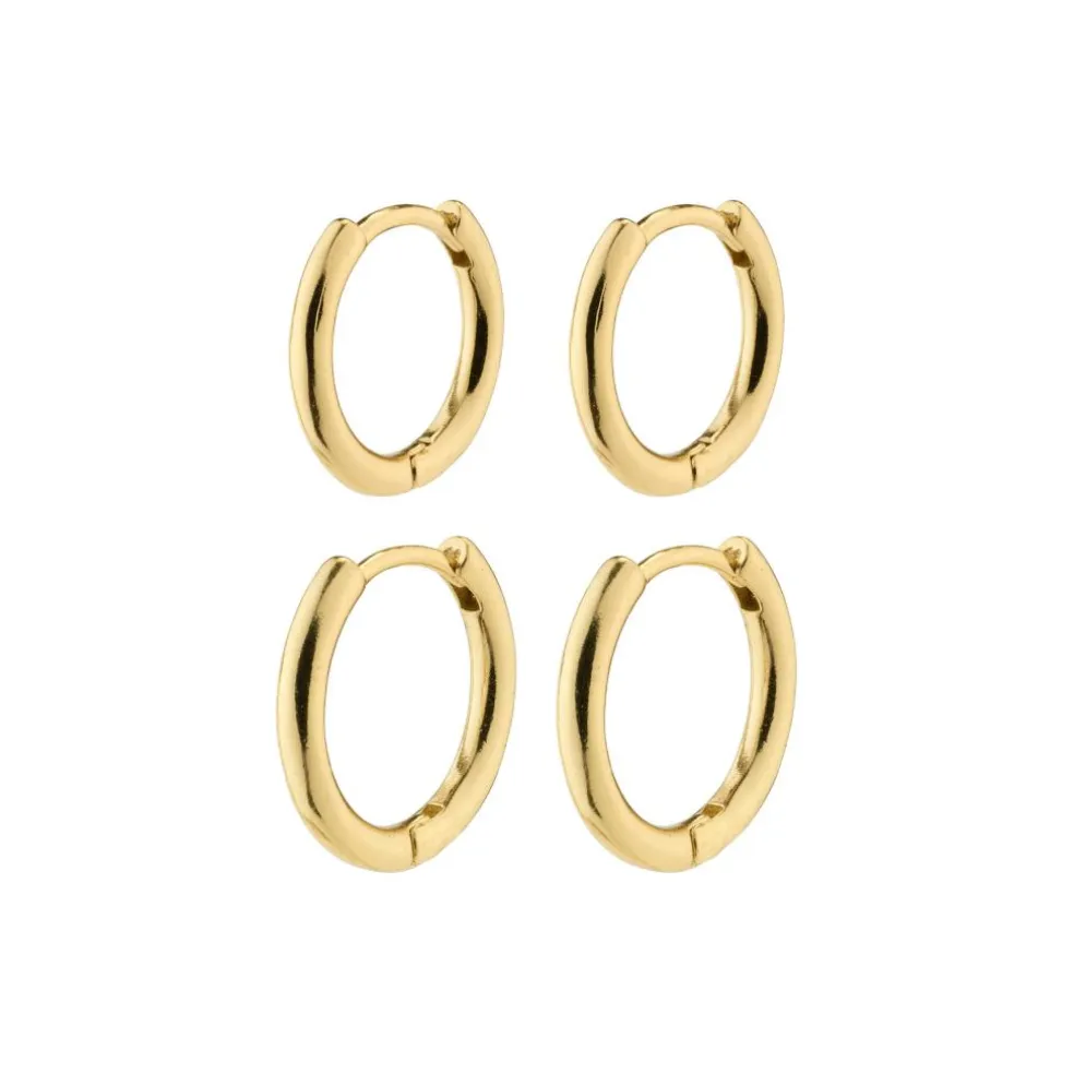 Rediscover the classics. LEAF huggies fra Pilgrim, fremstillet af 99% genanvendt materiale, er en hyldest til den klassisk stil. Sættet inkluderer fire guldbelagte mini-hoops i to størrelser, alle med praktisk kliklås. Fungerer perfekte som everyday pieces eller i combi med større items for et basic stilfuldt look.