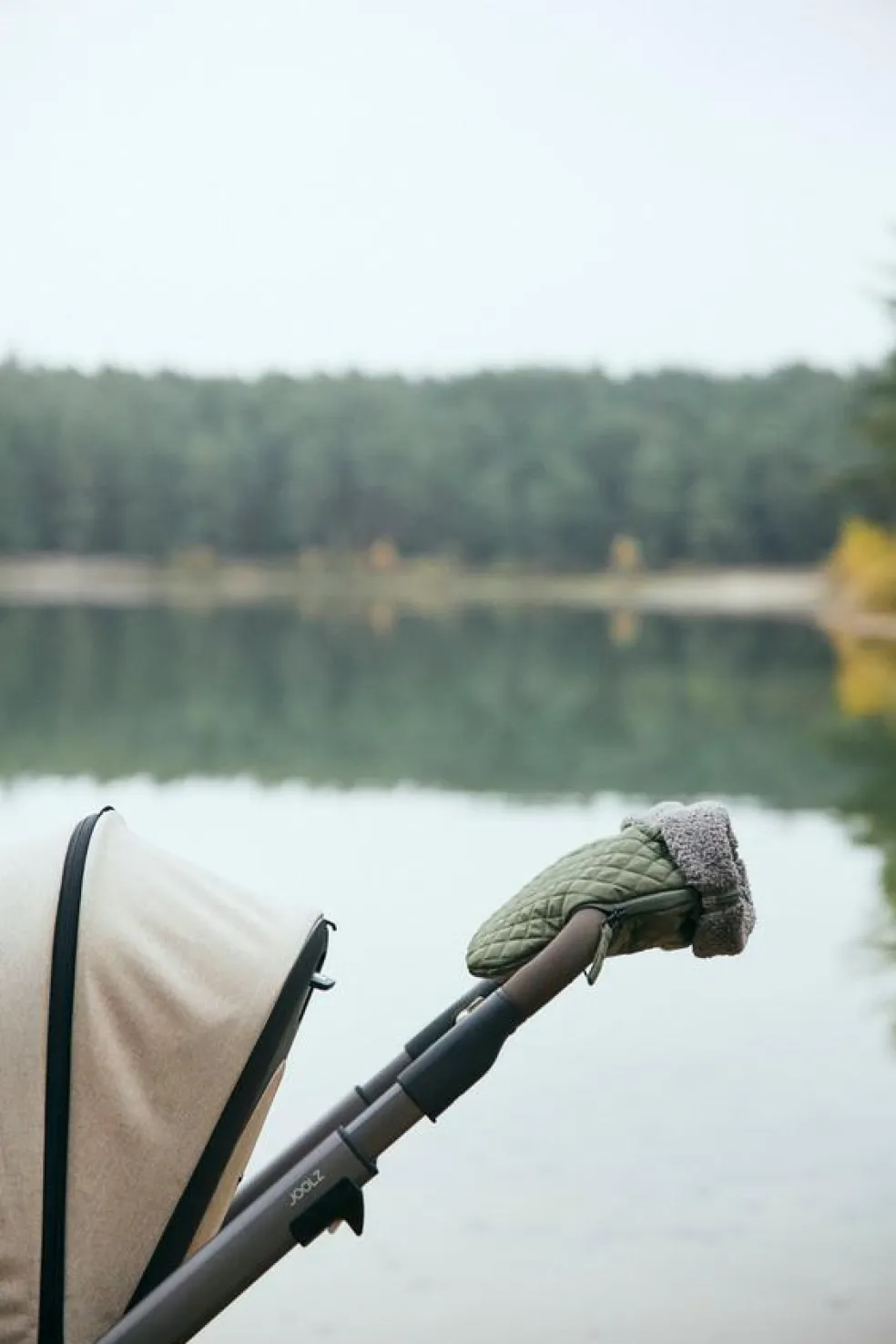 Handskerne har en lynlås i hver side, så de nemt kan sættes på styret af vognene.