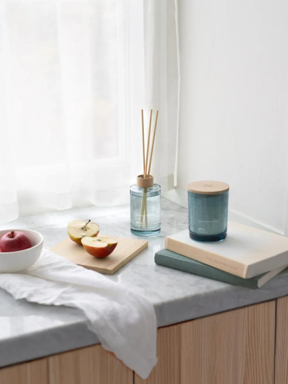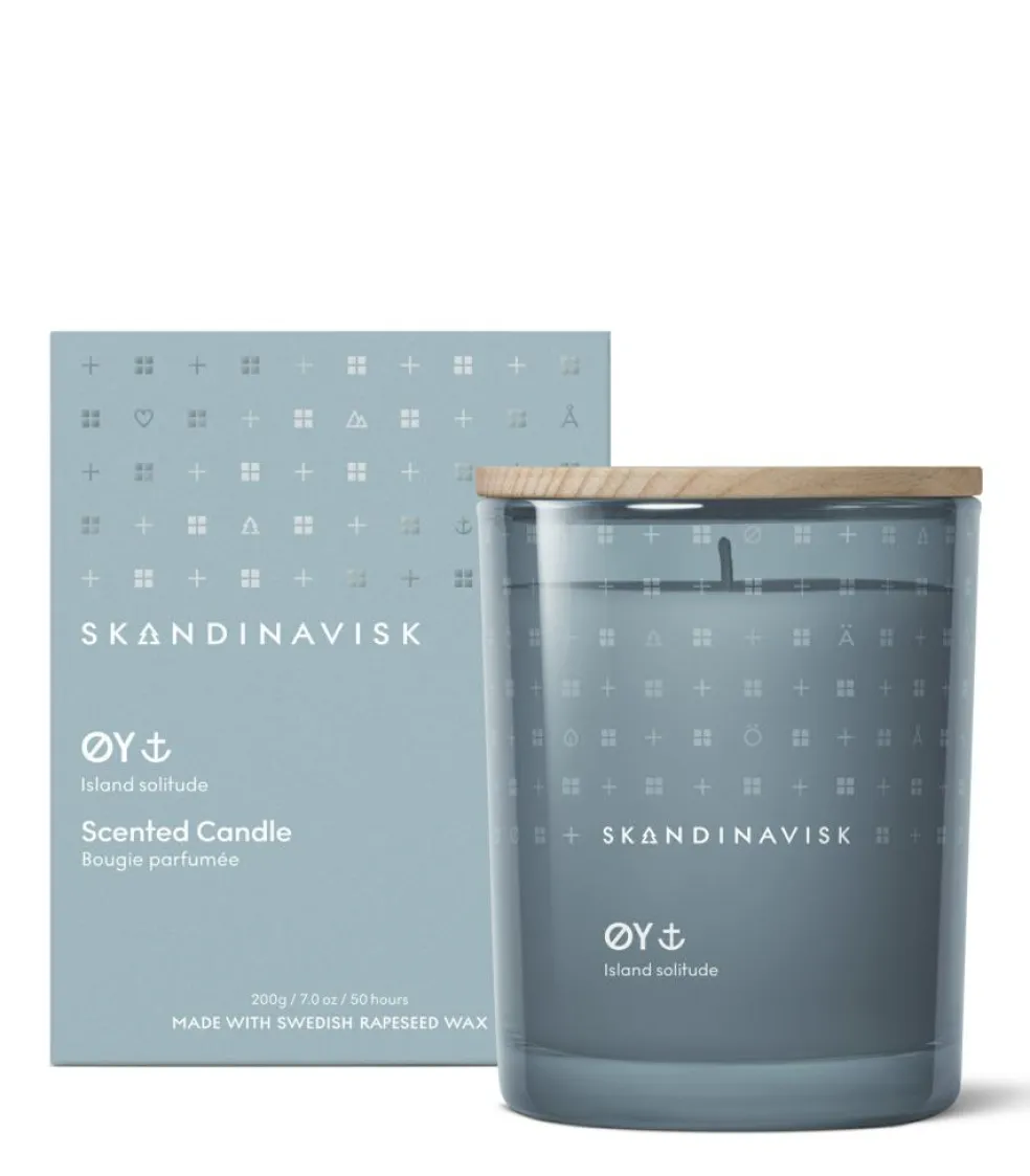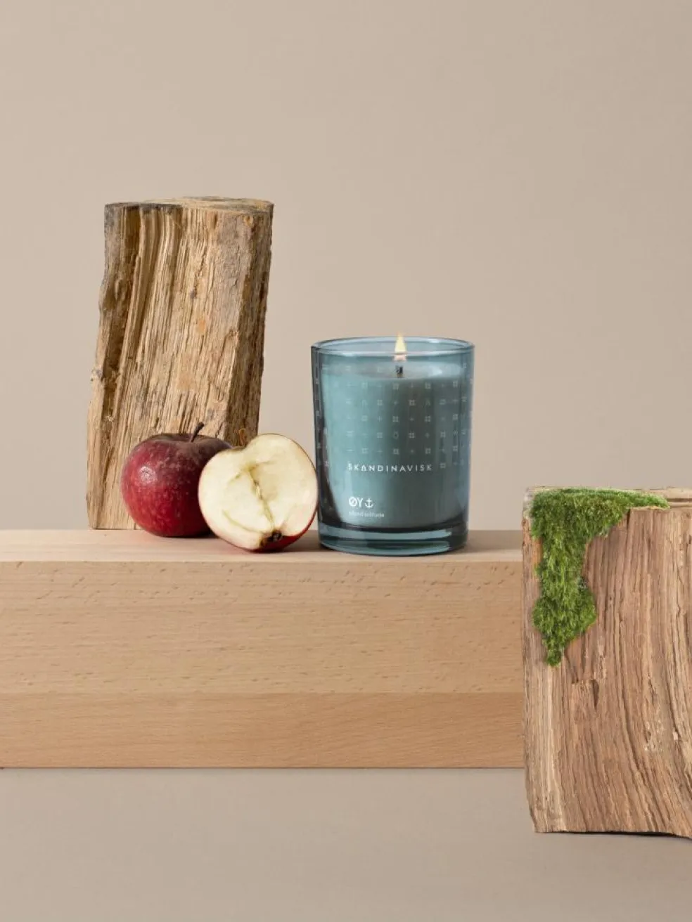 Duftlys med voks udvundet fra svensk rapsolie. Lyset er vegansk og kommer i et malet glas med indgraveret FSC-certificeret bøgetræslåg.