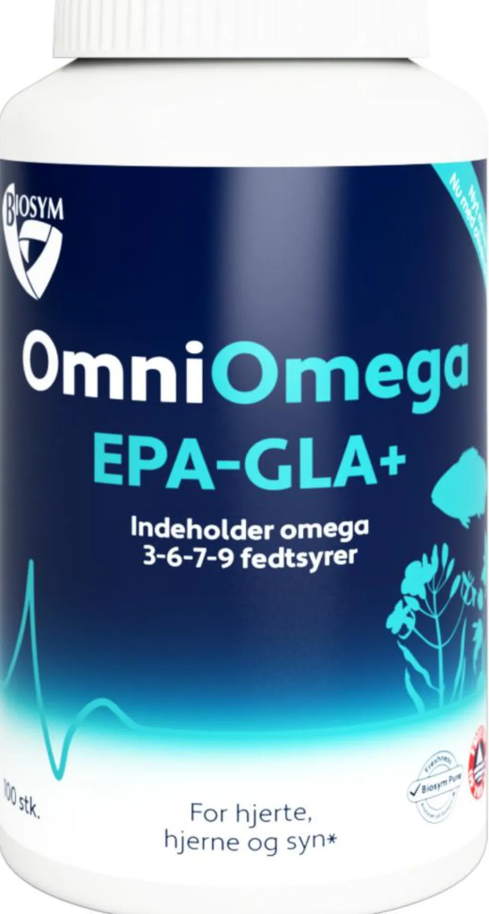 OmniOmega EPA-GLA+® indeholder EPA og DHA, som bidrager til hjertets normale funktion. DHA hjælper også med at opretholde normal hjernefunktion og normalt syn. Denne gavnlige virkning opnås med et dagligt indtag på i alt 250 mg EPA og DHA for hjertet og 250 mg DHA for hjernen og synet.