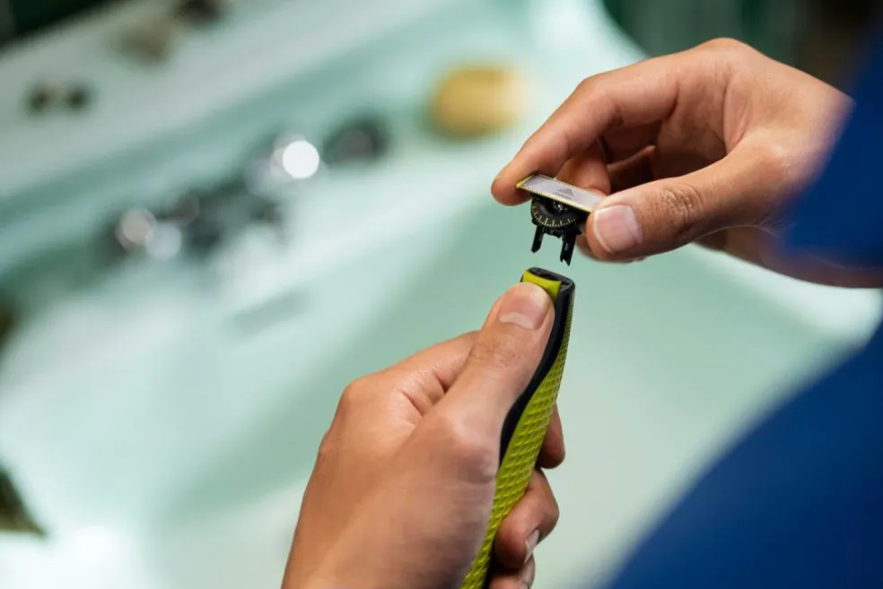 OneBlade tåler vand (IPX7) og er nem at rengøre: Skyl den blot under vandhanen. Du kan barbere dig vådt eller tørt, selv under bruseren – uanset hvad du foretrækker. Barberskum er ikke nødvendigt.