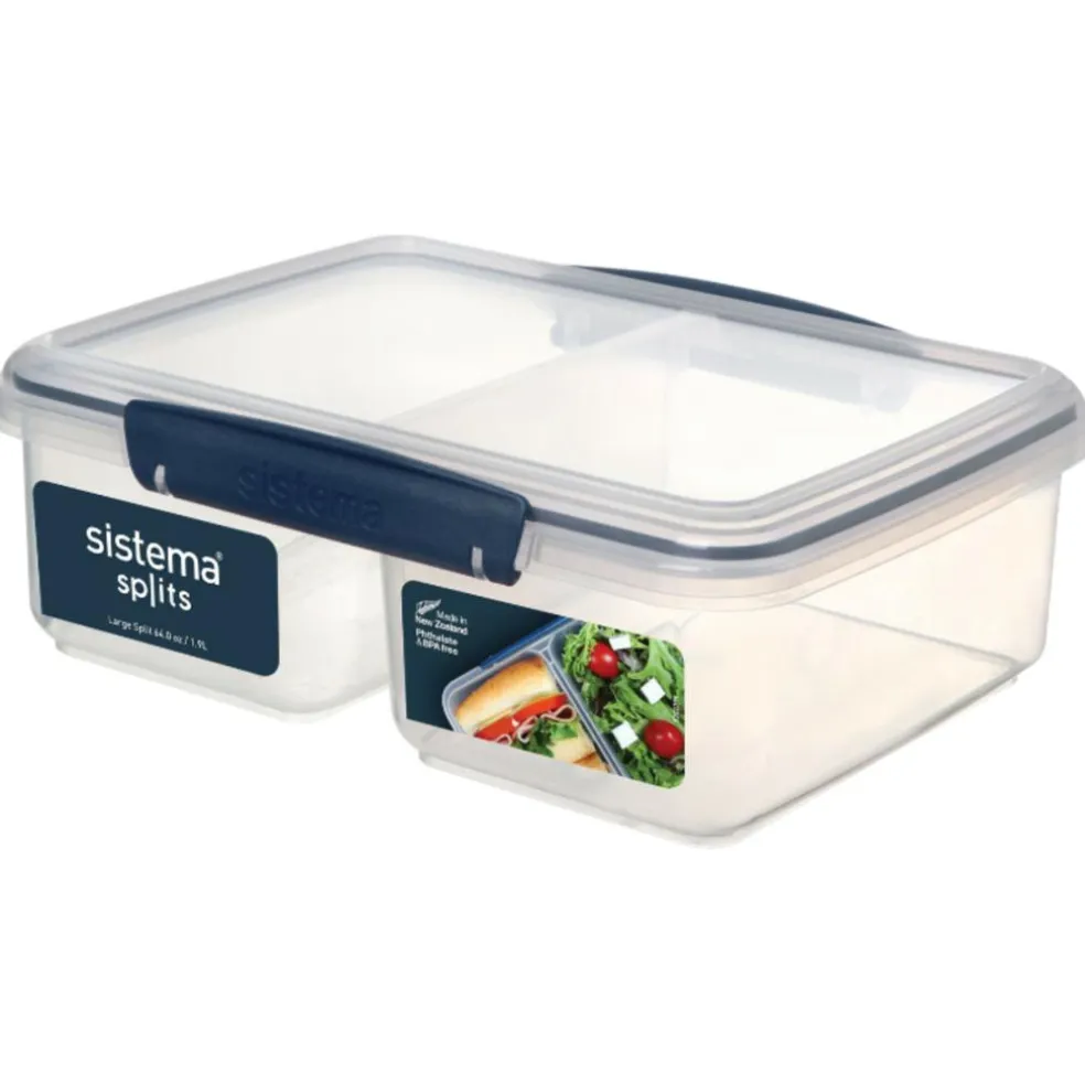Opdel 2 slags fødevarer nemt og enkelt. Frugt og grøntsager eller kød og kartofler, frys/køl resterne og opvarm derefter i mikroovn. Mere simpelt kan det ikke blive. Gennemsigtigt plast med mørkeblå klips.