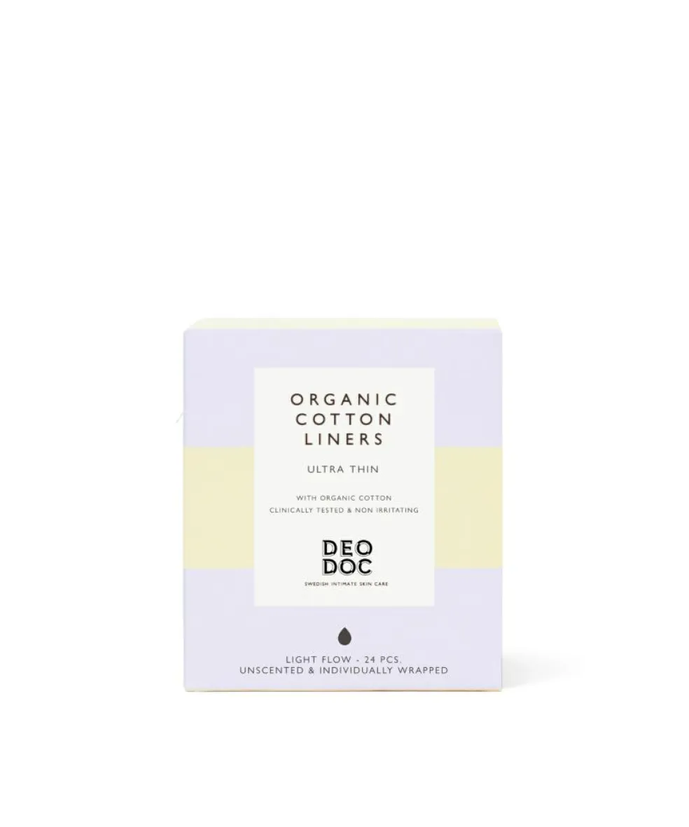 I modsætning til syntetiske materialer er bomuld komposterbart og biologisk nedbrydeligt, hvilket gør DeoDocs liners gode for vulvaen.. Hver liner er individuelt pakket ind med en ultratynd størrelse for at være behagelig hele dagen.