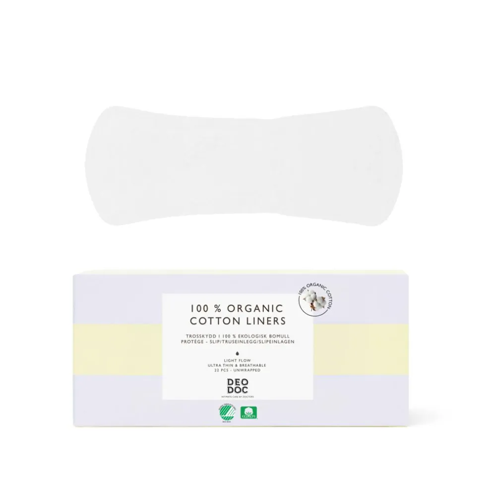 Derfor har vi stolt udviklet 100 % økologisk bomuldsmateriale, der hjælper med at forhindre fugt, irritation og lugt. I modsætning til syntetiske materialer er bomuld komposterbart og biologisk nedbrydeligt, hvilket gør DeoDocs liners gode for vulvaen.