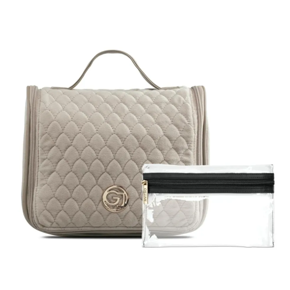 Organizeren er fremstillet i lækker blød velour og lukkes med lynlås med stort vedhæng så der er et bedre greb når tasken skal åbnes og lukkes. Det stilfulde design med Gillian Jones guld-emblem på fronten gør denne toilettaske til et must-have til enhver rejsende kvinde. Og det bedste af det hele er, at den kan maskinvaskes ved 30 grader og tørretumbles ved lav varme, så den altid er klar til din næste tur.