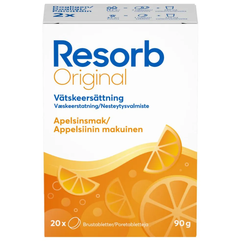 RESORB® Original er en kulhydrat-elektrolytopløsning til tilførsel af væske og salte. Kulhydrat-elektrolytopløsninger øger optagelsen af vand under fysisk træning.