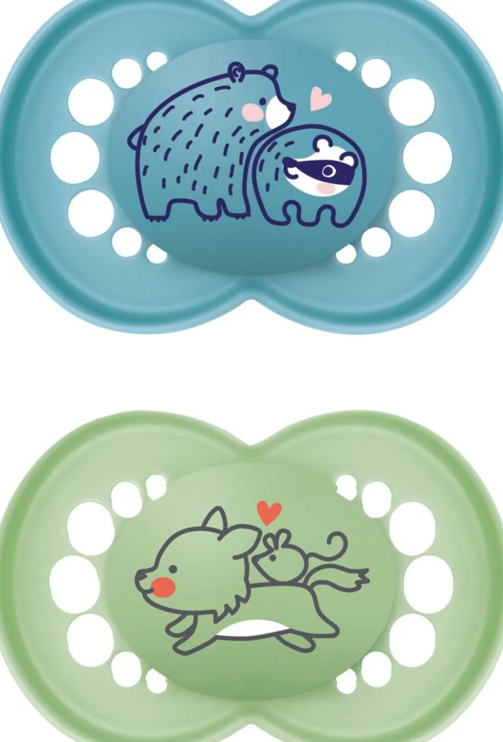 MAM Original 2-pakken er anbragt i en praktisk opbevarings- og steriliseringsboks, der gør det nemt at sterilisere sutterne i mikrobølgeovnen.