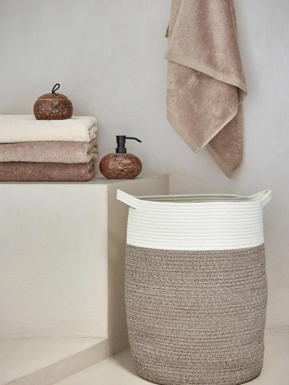 Denne elegante kurv er lavet i en blanding af 65% polyester og 35% bomuld, hvilket gør den både slidstærk og holdbar i daglig brug. Det betyder, at du kan stole på, at kurven bevarer sin form og sit flotte udtryk, selv når den er fyldt med tøj. Den varme beige nuance (nougat) gør den let at integrere i enhver indretning, fra moderne til klassisk.