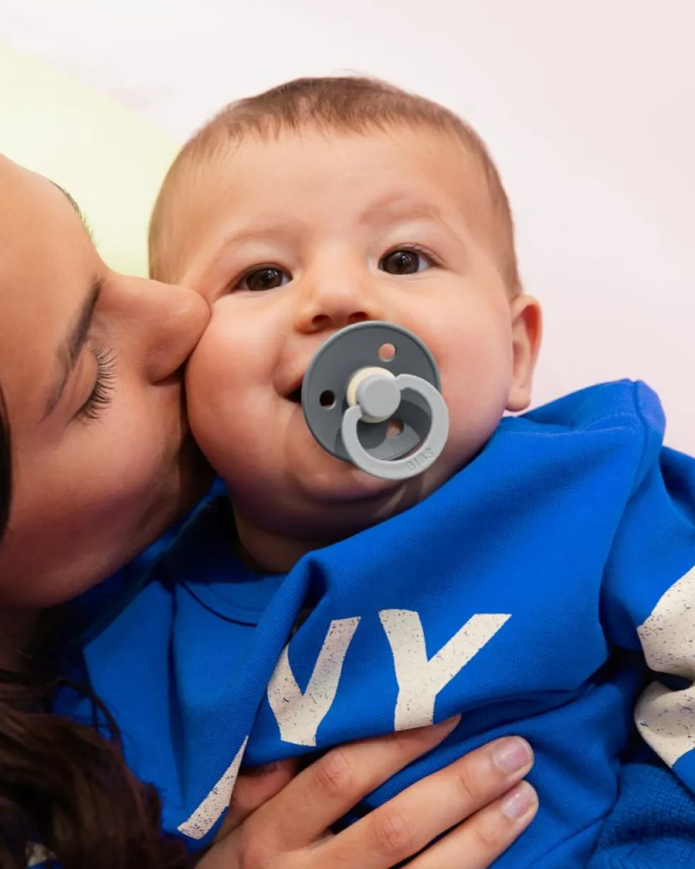 Denne kollektion giver forældre mulighed for at dele deres unikke stil med deres barn uden at gå på kompromis med kvalitet og sikkerhed. BIBS Colour er den originale BIBS-sut og har været på markedet i over 40 år. Den har det karakteristiske runde BIBS-skjold med tre udluftningshuller og en rund BIBS-indgraveret ring.