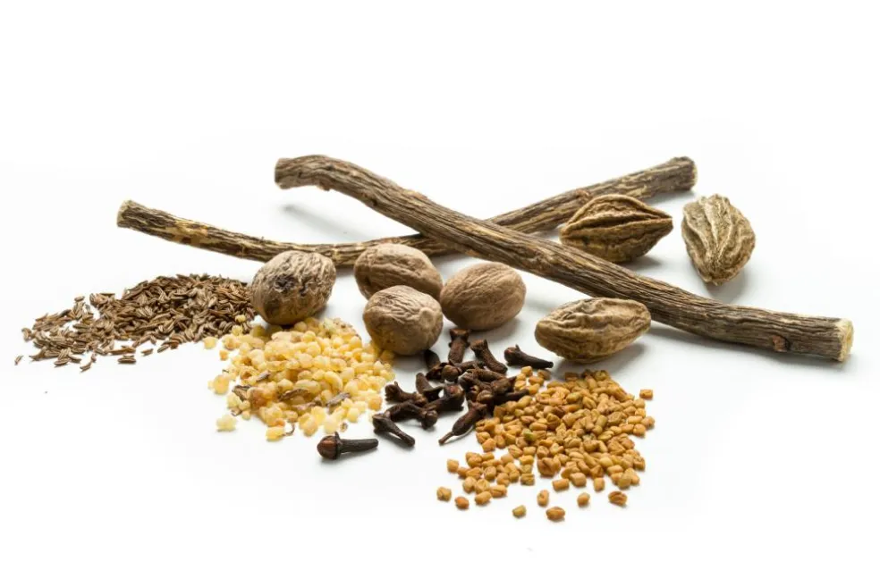 Derudover indeholder NervoTib: kommen, myrobalanfrugt, lakridsrod, muskatnød, kryddernellike, læge-alantrod, sichuanpeber, bukkehornsfrø, boswellia og dyvelsdræk.