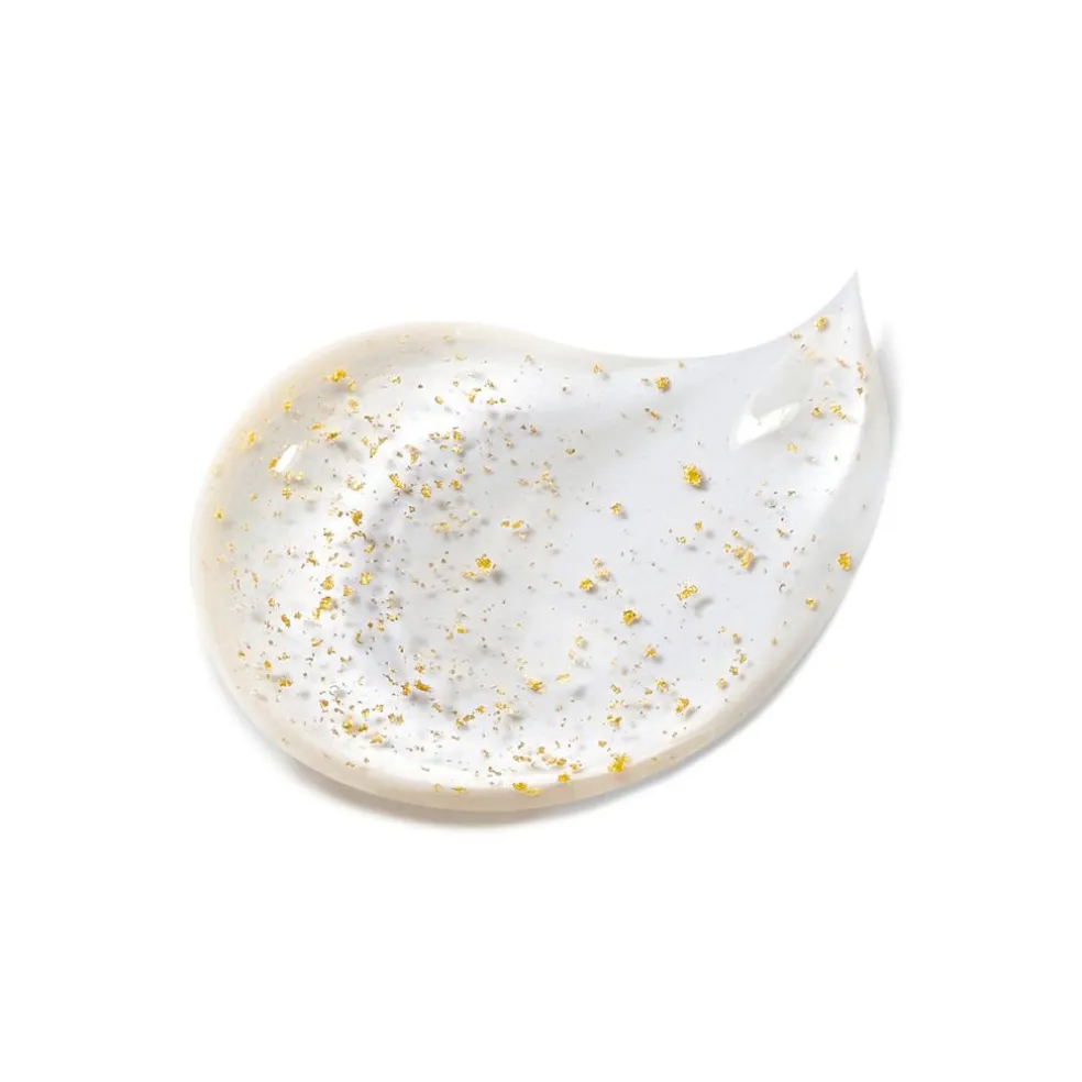 Fine guldblade er suspenderet i en gennemsigtig tekstur. Huden bliver perfekt oplyst med en ungdommelig glød.¹Procentdel af base, uden pigment og perlemor.²Instrumentel test på 24 kaukasiske kvinder.