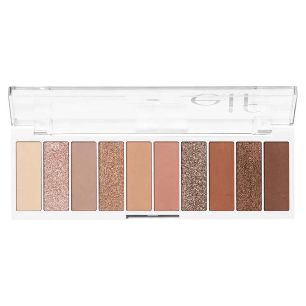 Hold det æterisk med denne drømmende 10-farvede øjenskyggepalet, fyldt med ultra-pigmenterede neutrale og rosa guld nuancer i en blanding af mat, shimmer og metallisk finish. Fremhæv og definer øjnene for at skabe uendelige looks, fra et blødt look i dagtimerne til den ultimative party-ready smokey eye. Den cremede formel påføres silkeagtigt og blender nemt, og giver intens farve, når den bruges sammen med din yndlings e.l.f. øjenskyggepensel.