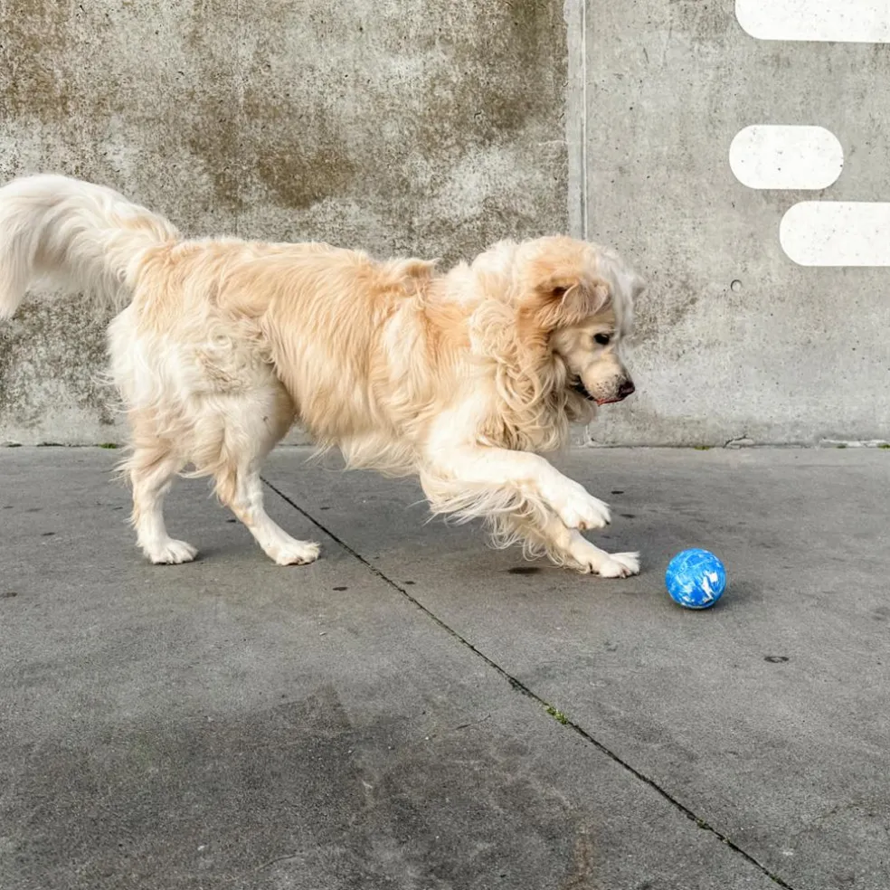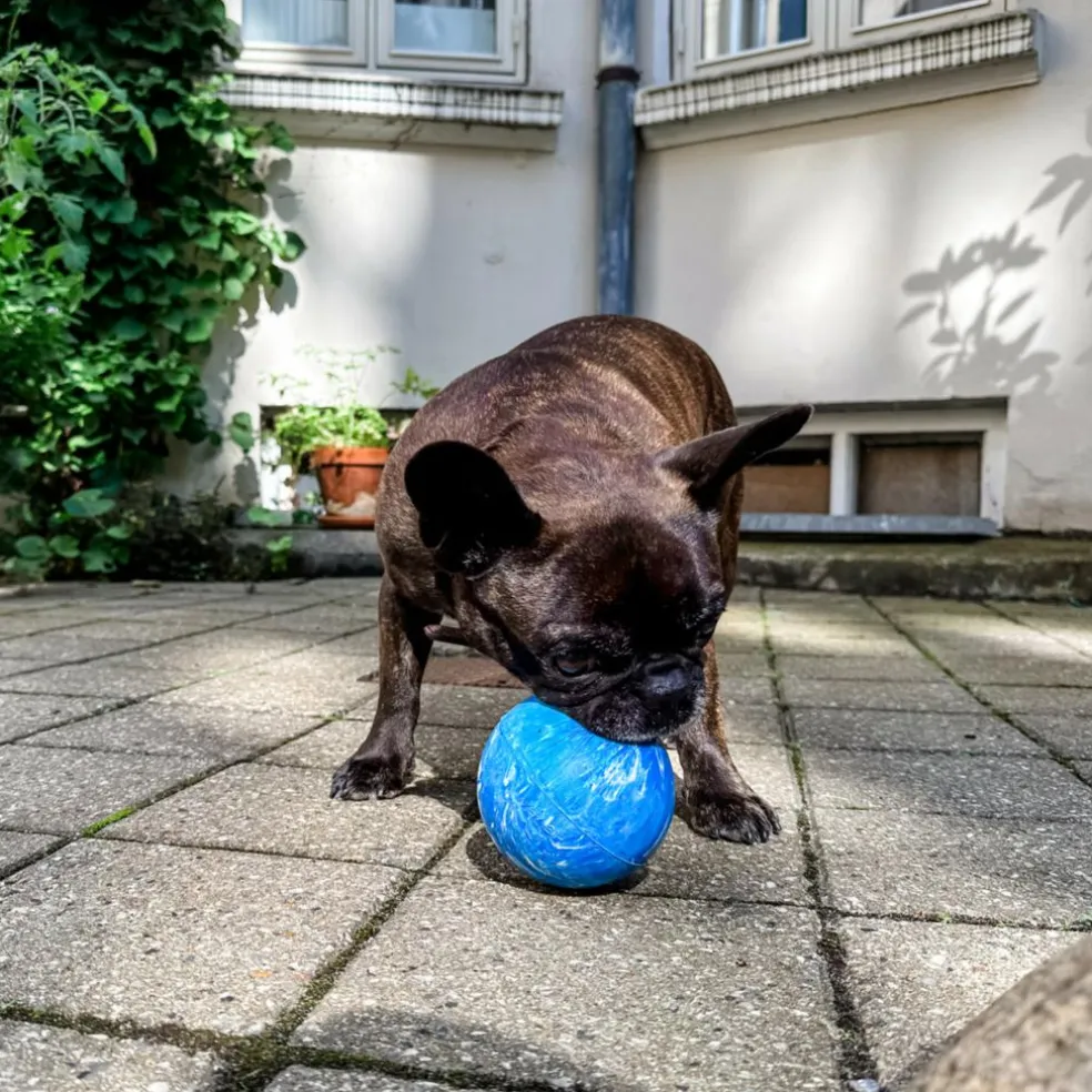 Bolden er slidstærk og solid, samtidig med at det naturlige gummi er blidt ved din hunds tænder, når I leger.