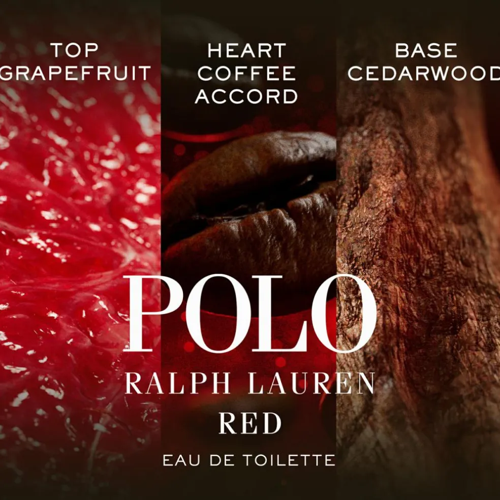 En dristig og energigivende sammensætning. Polo Red Eau de Toilette åbner med en eksplosiv blanding af rød grapefrugt, cedrat og citron, der leverer en skarp citrusoplevelse, som straks vækker sanserne. I hjertet udfolder sig en forførende kombination af rød safran, lavandin og salvie, der tilføjer en aromatisk dybde med et strejf af krydderi. Når duften sætter sig, smelter den varme dybde af rødtræ og rav sammen med en intens kaffeakkord og skaber en glat, men dristig finish, der efterlader et varigt indtryk.