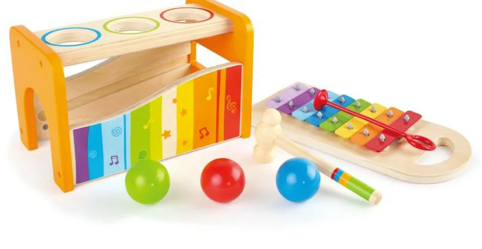 Slå boldene ned, så de rammer xylofonen og spiller en lille melodi.