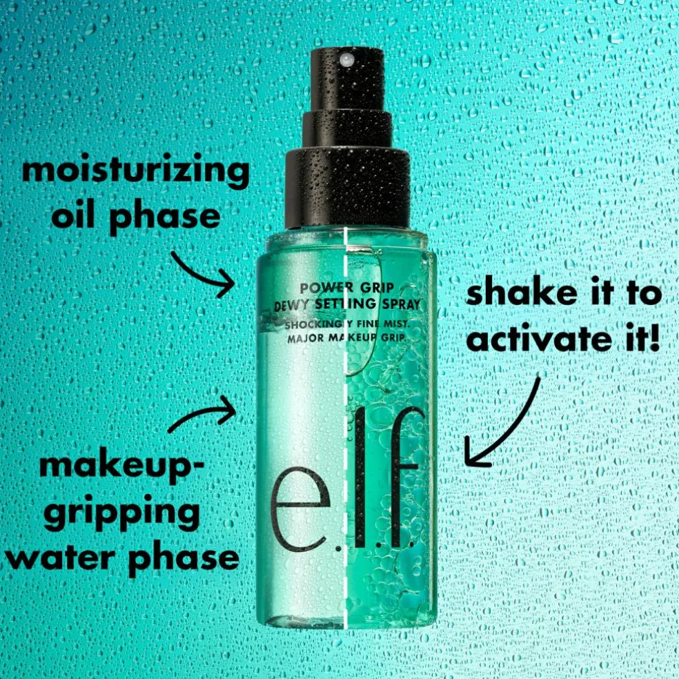 Opdag nye måder at perfektionere din makeup på med e.l.f. Cosmetics Power Grip Dewy Setting Spray. Denne innovative spray giver din makeup et stærkt greb og efterlader huden med en strålende, dugfrisk finish.