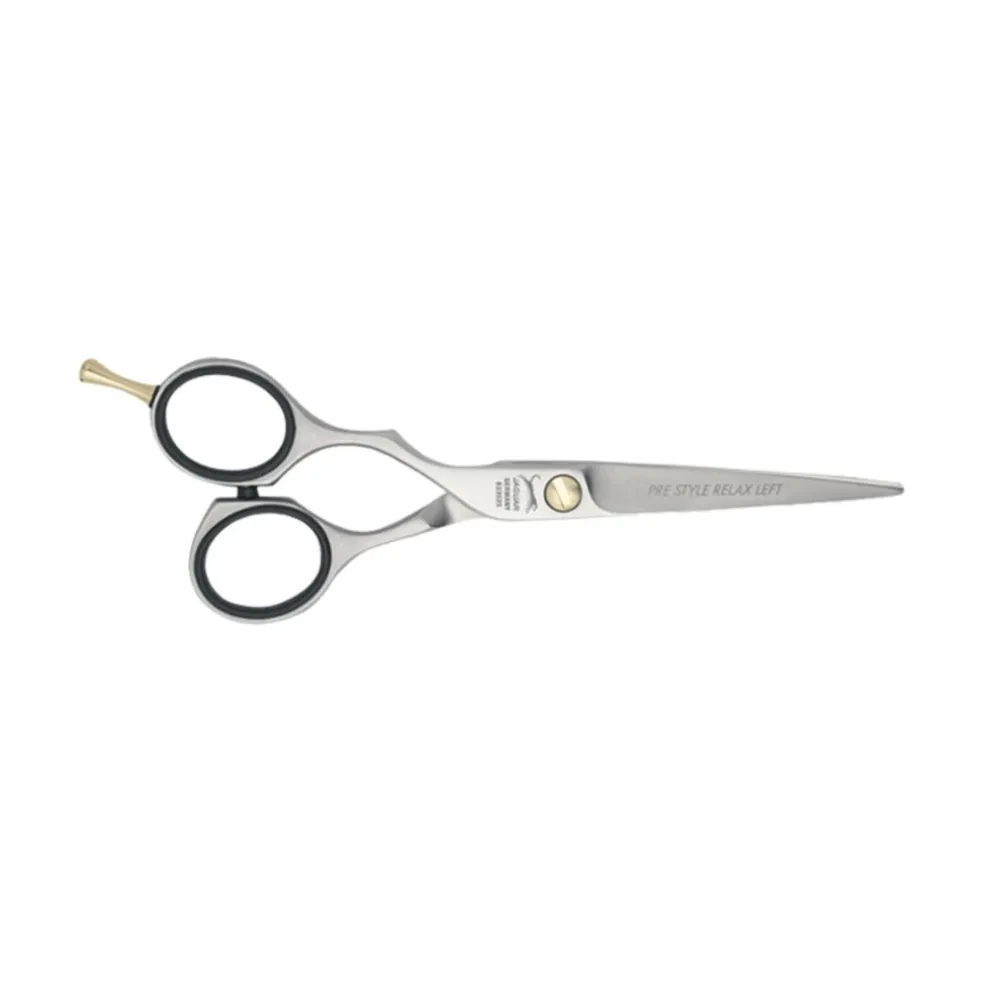 Professionel frisørsaks til venstrehåndet, som er designet med et ergonomisk greb. Saksen har et satineret finish og det ene skær er mikrofortandet. Saksens længde er på 5,25 tommer.
