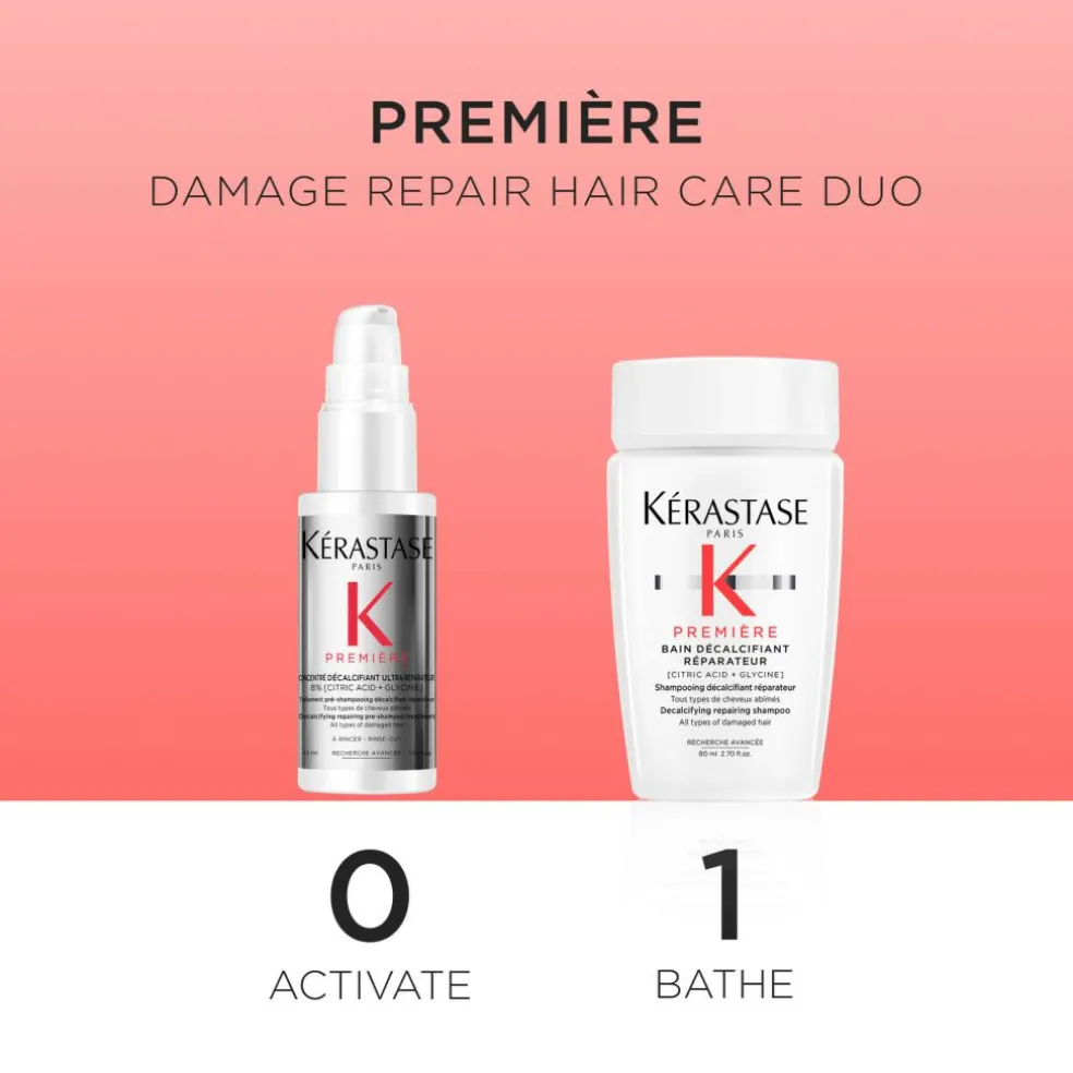 Concentré Décalcifiant Ultra-Réparateur fra Kérastase er en dobbeltvirkende afkalknings- og reparerende præ-shampoo hårkur til beskadiget hår fra Kérastase. Fjerner kalcium og forstærker hårets styrke og efterlader det stærkere, glattere og mere glansfuldt – som om det var fornyet.