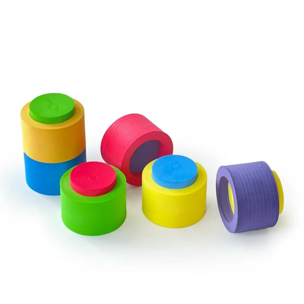 bObles Connect består af fire cirkelblokke, der enten kan bruges separat, sammensættes to og to eller forvandles til en lang rulle.