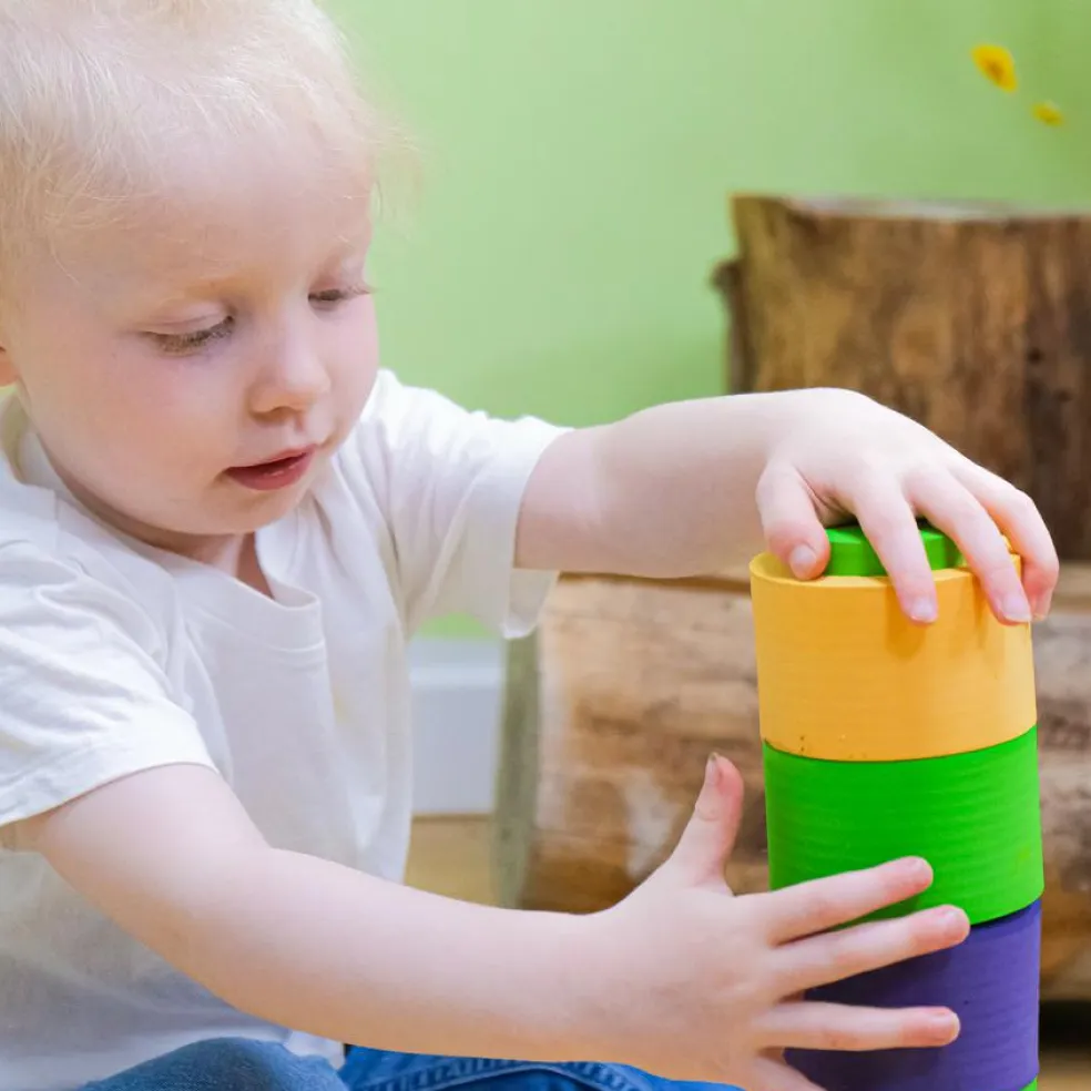 Byg et lille tårn af alle blokkene, tril dem afsted mellem hinanden, eller gem dem rundt omkring i stuen – kan I finde dem?