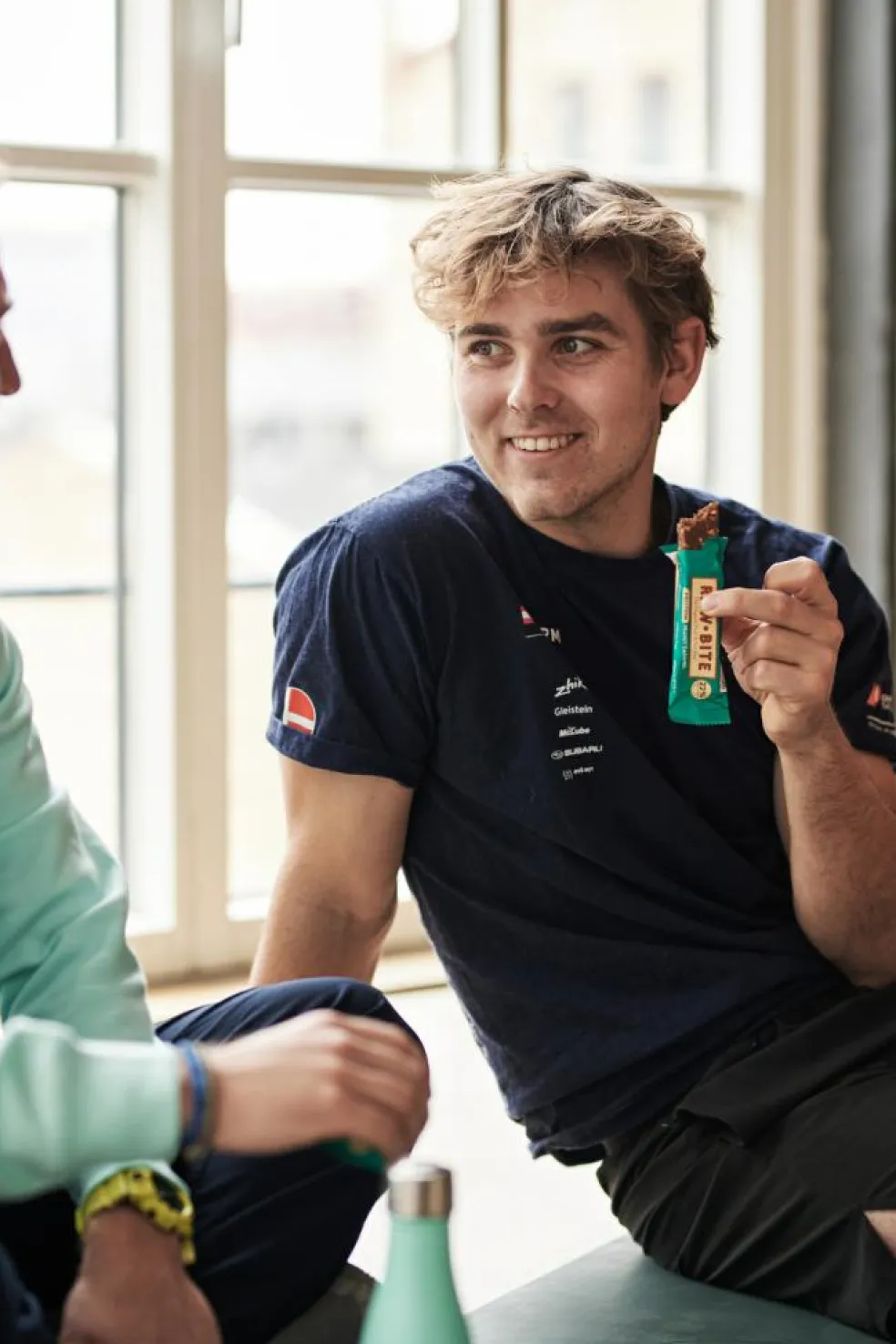 Tørrede dadler 44%, knuste JORDNØDDER 30%, risproteinpulver 14%, rosiner, havsalt, naturlig karamelsmag.