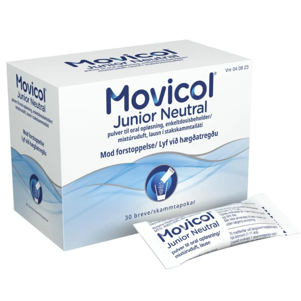 Movicol Junior Neutral hjælper med at få en lind afføring, selvom barnet har været forstoppet i længere tid. Lægen kan have givet dit barn Movicol Junior Neutral for noget andet. Følg altid lægens anvisning.